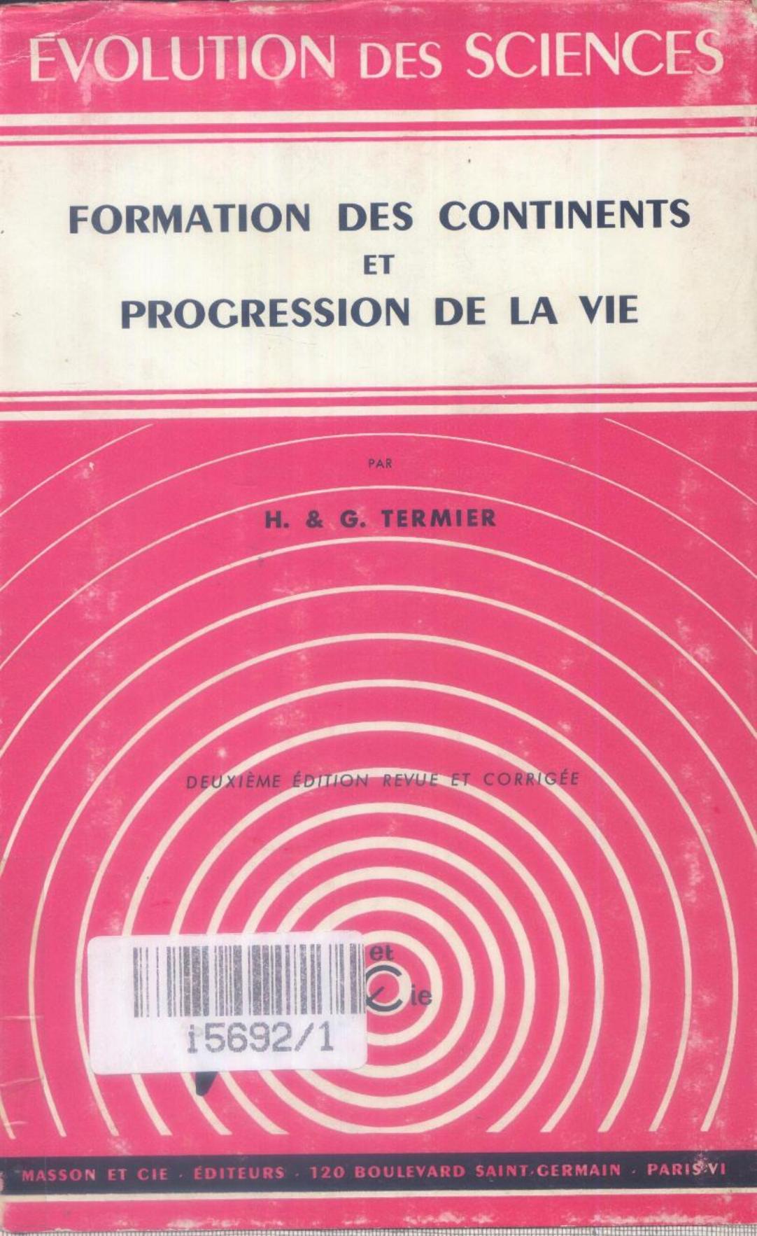 Termier, H. & Termier, G. (1967). Formation des continents et progression de la vie (2è éd. ent.ref.) . Masson;