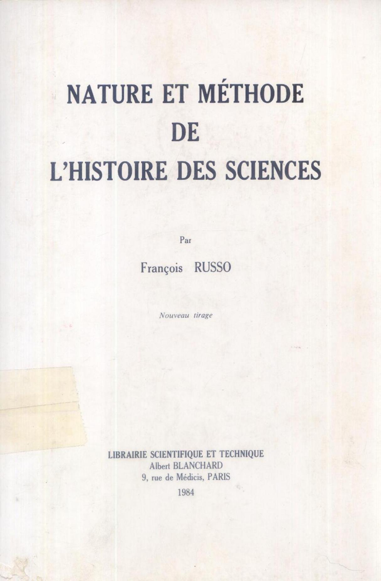 Russo, F. (1984). Nature et méthode de l'histoire des sciences . A. Blanchard;