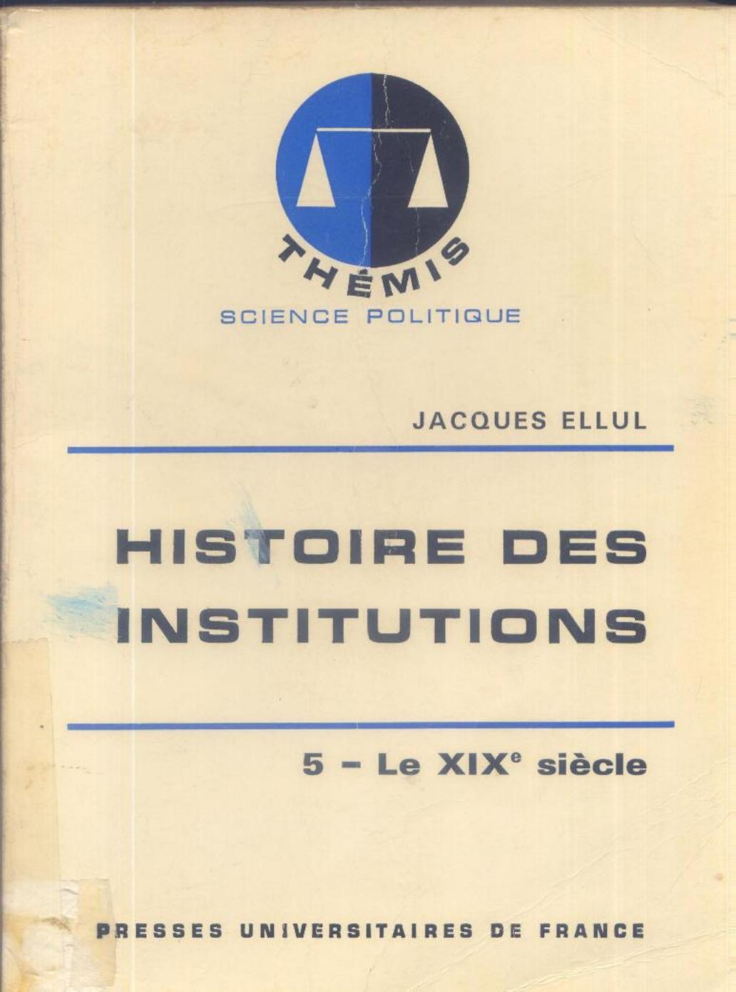 Ellul, J. (1979). Histoire des institutions. 5, Le XIXème siècle (7ème éd.) . PUF;