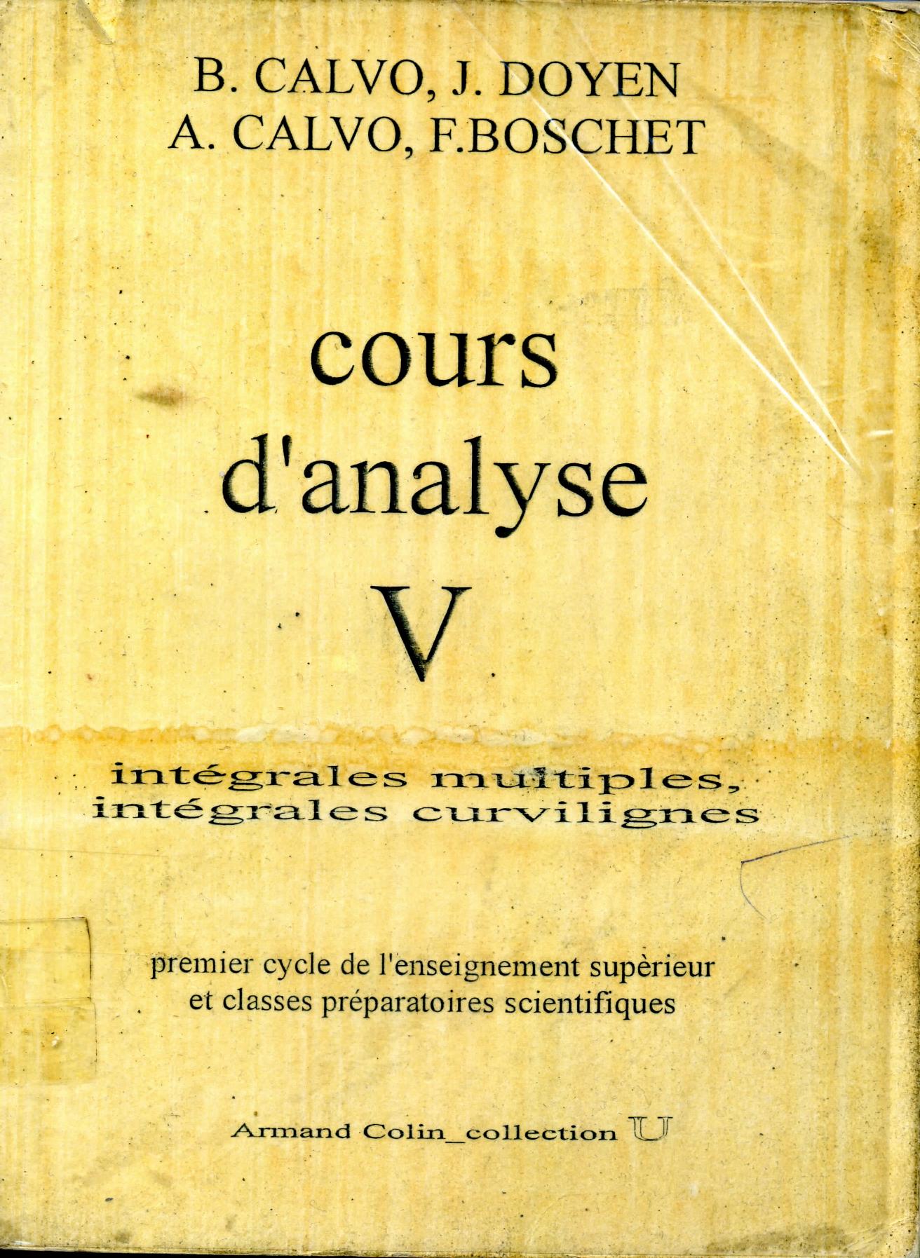 Calvo, B. et al. (1977). Cours d'analyse .5, intégrales multiples, intégrales curvilignes . A. Colin;