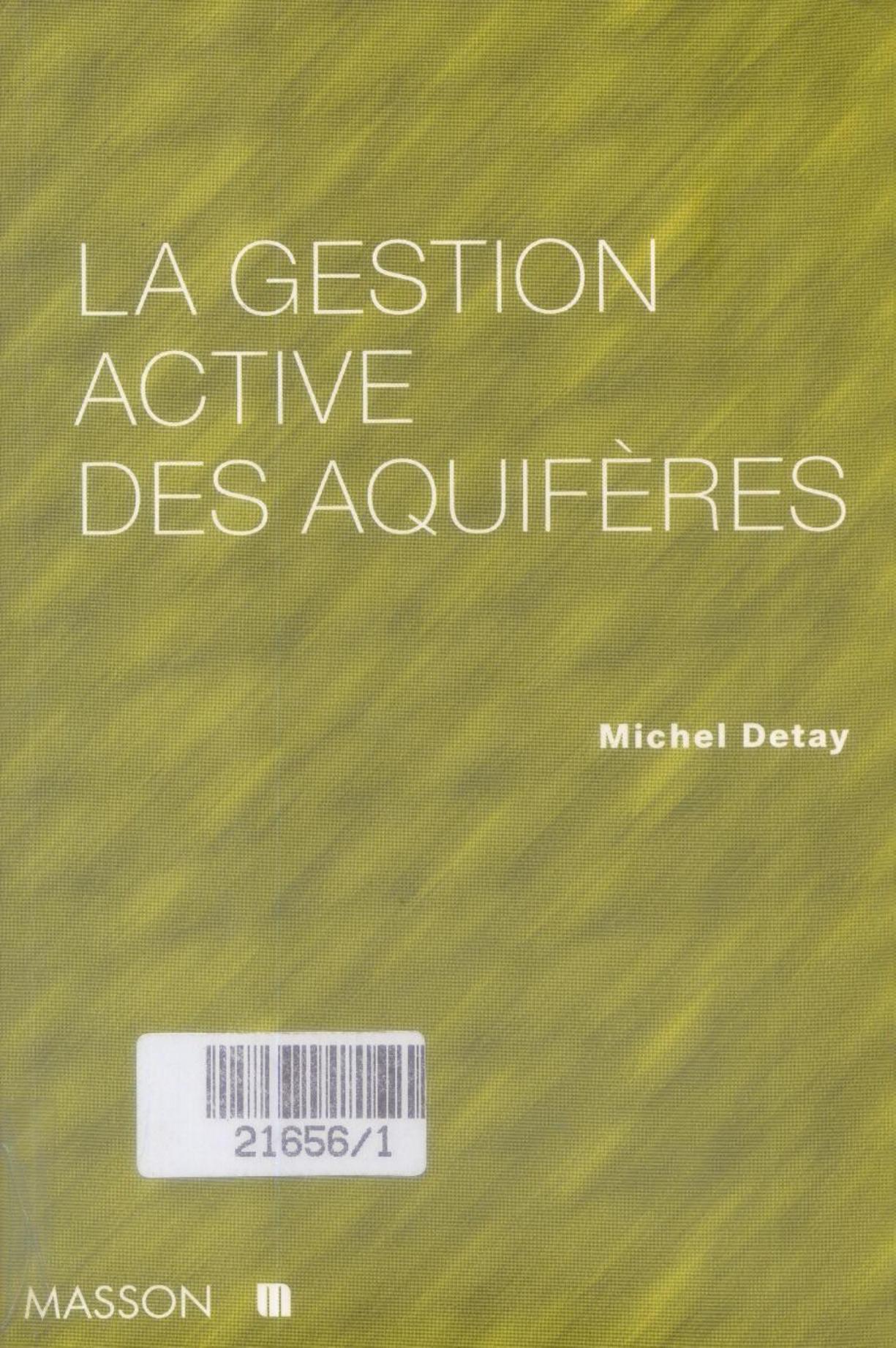 Detay, M. (1997). La Gestion active des aquifères . Masson;