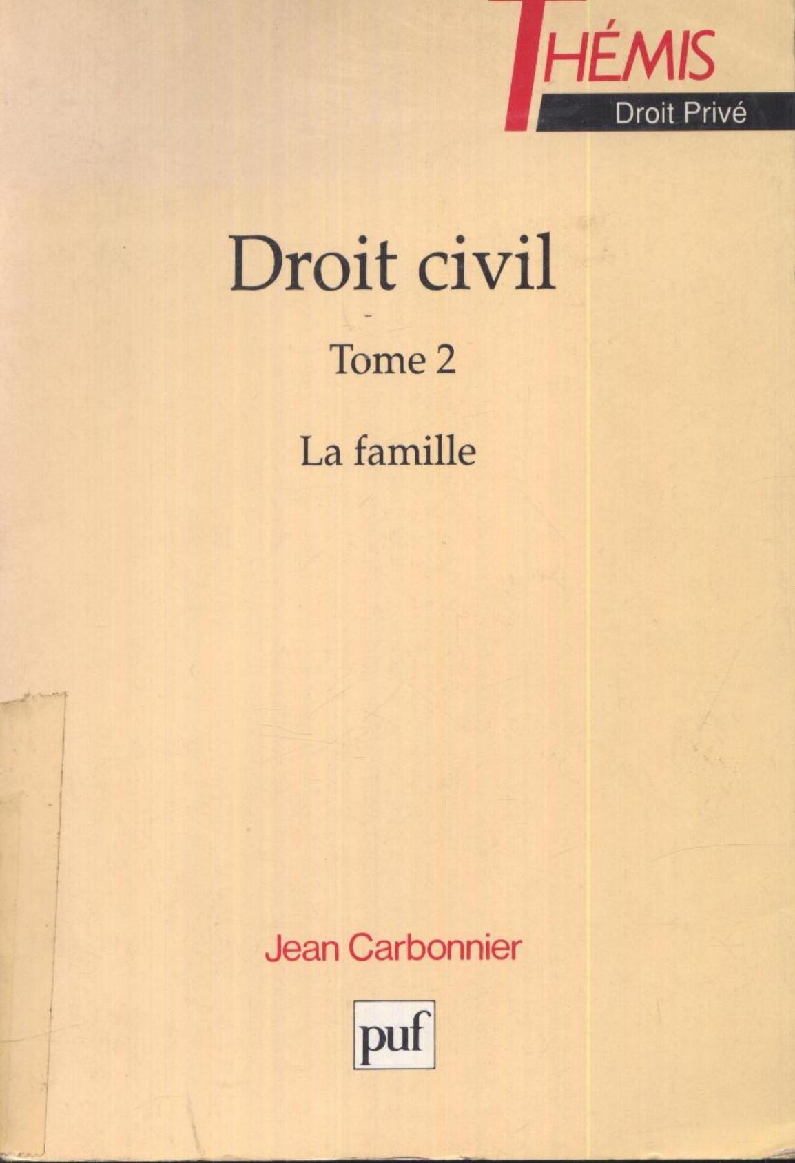 Carbonnier, J. (1979). Droit civil .2, La famille, les incapacités (11è éd) . PUF;