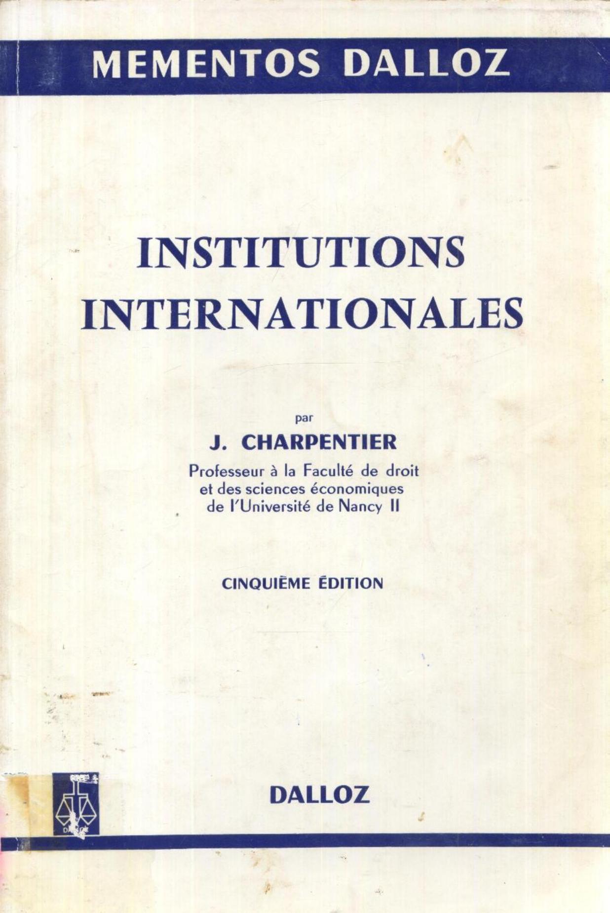 Charpentier, J. (1975). Institutions internationales (5è éd.) . Dalloz;