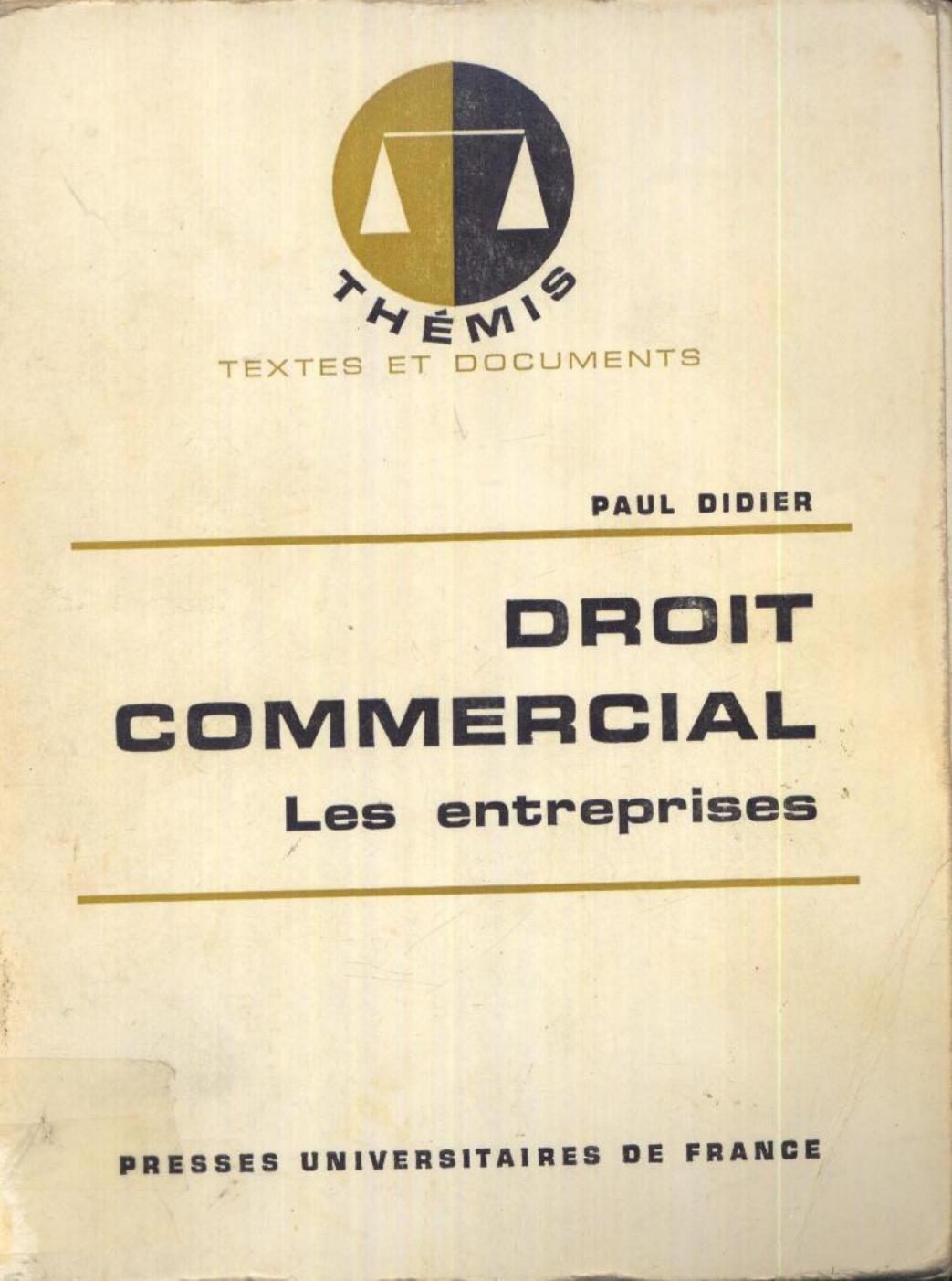 Didier, P. (1972). Droit commercial . PUF;