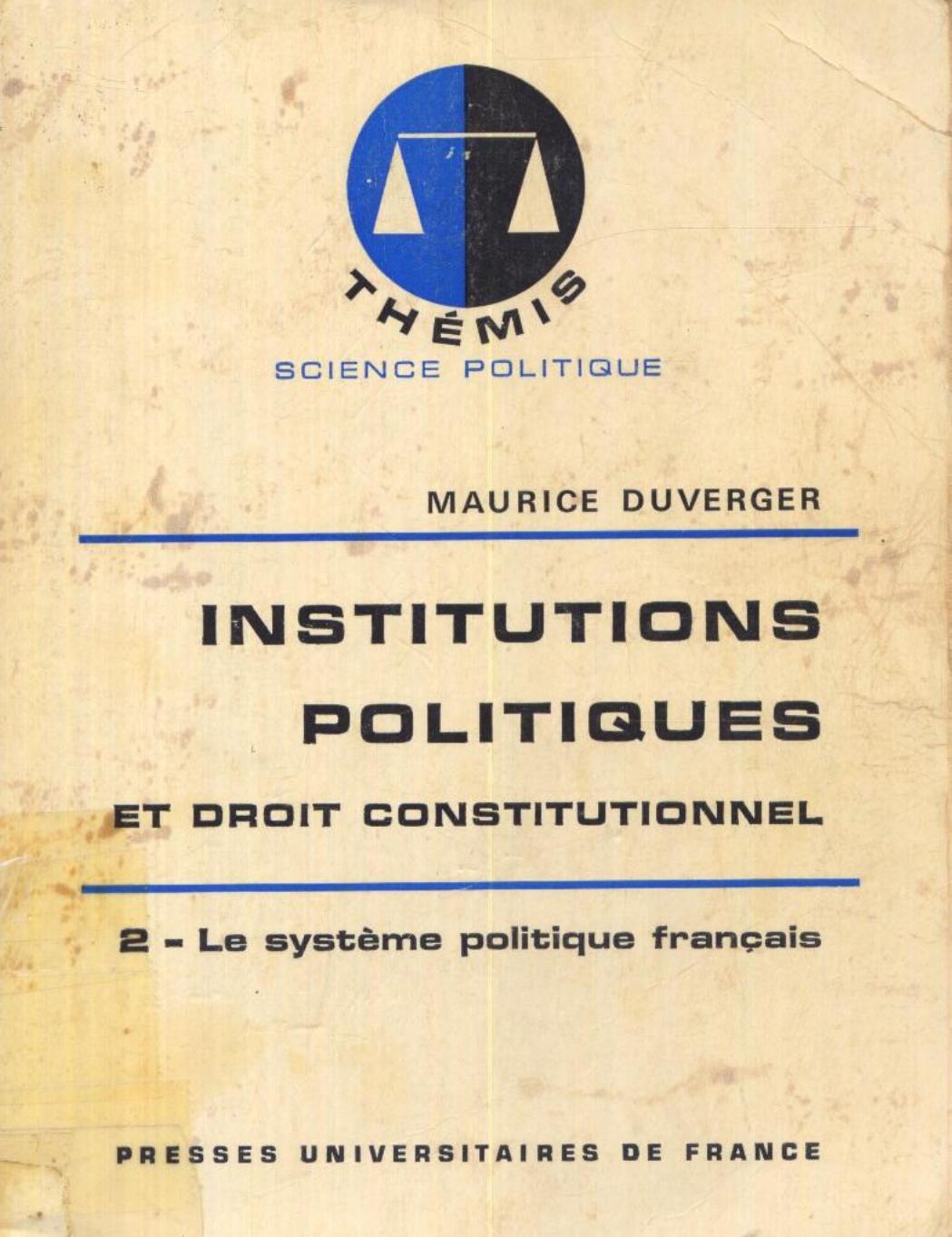 Duverger, M. (1980). Institutions politiques et droit constitutionnel. 2, Le système politique français (15è éd) . PUF;