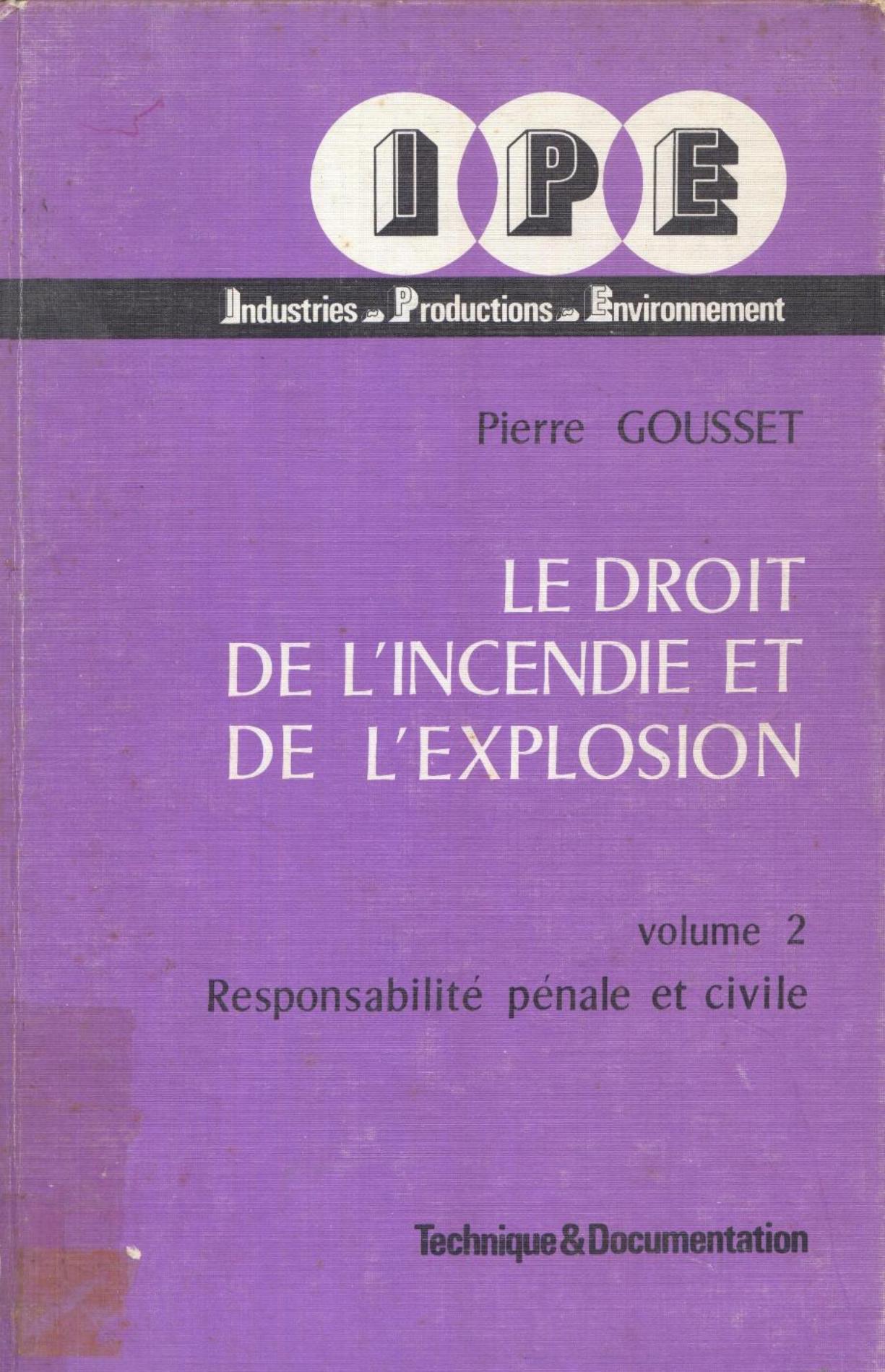 Gousset, P. (1976). Le droit de l'incendie et de l'explosion. 2, Responsabilité pénale et civile . Techniques et documentation;