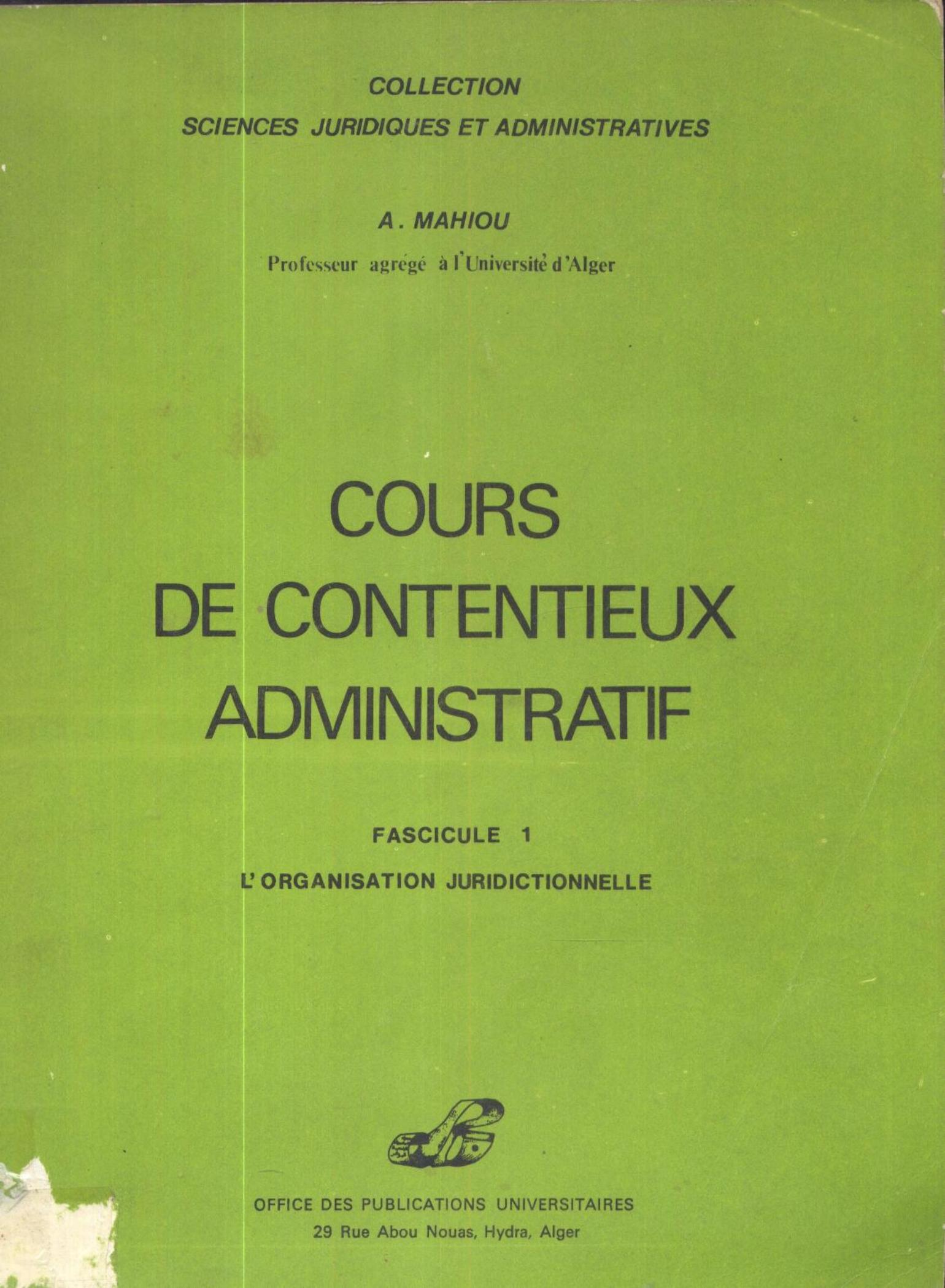 Mahiou, A. (s.d.). Cours de contentieux administratif . OPU;
