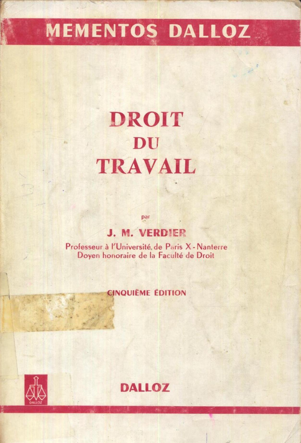 Verdier, J. (1975). Droit du travail (5è éd) . Dalloz;