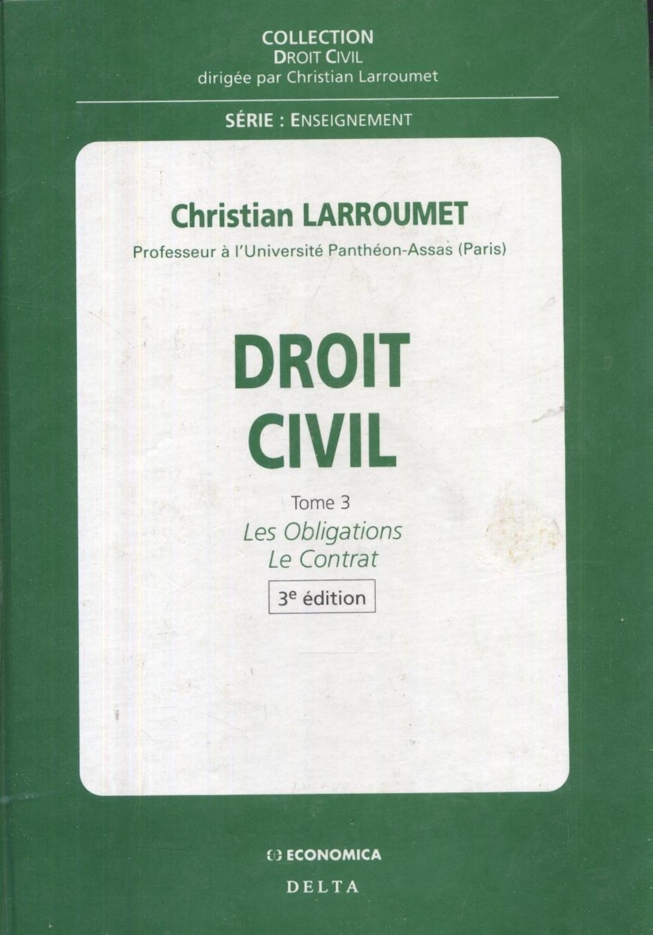 Larroumet, C. (1996). Droit civil .3, les obligations, le contrat (3è éd) . Economica; Delta;