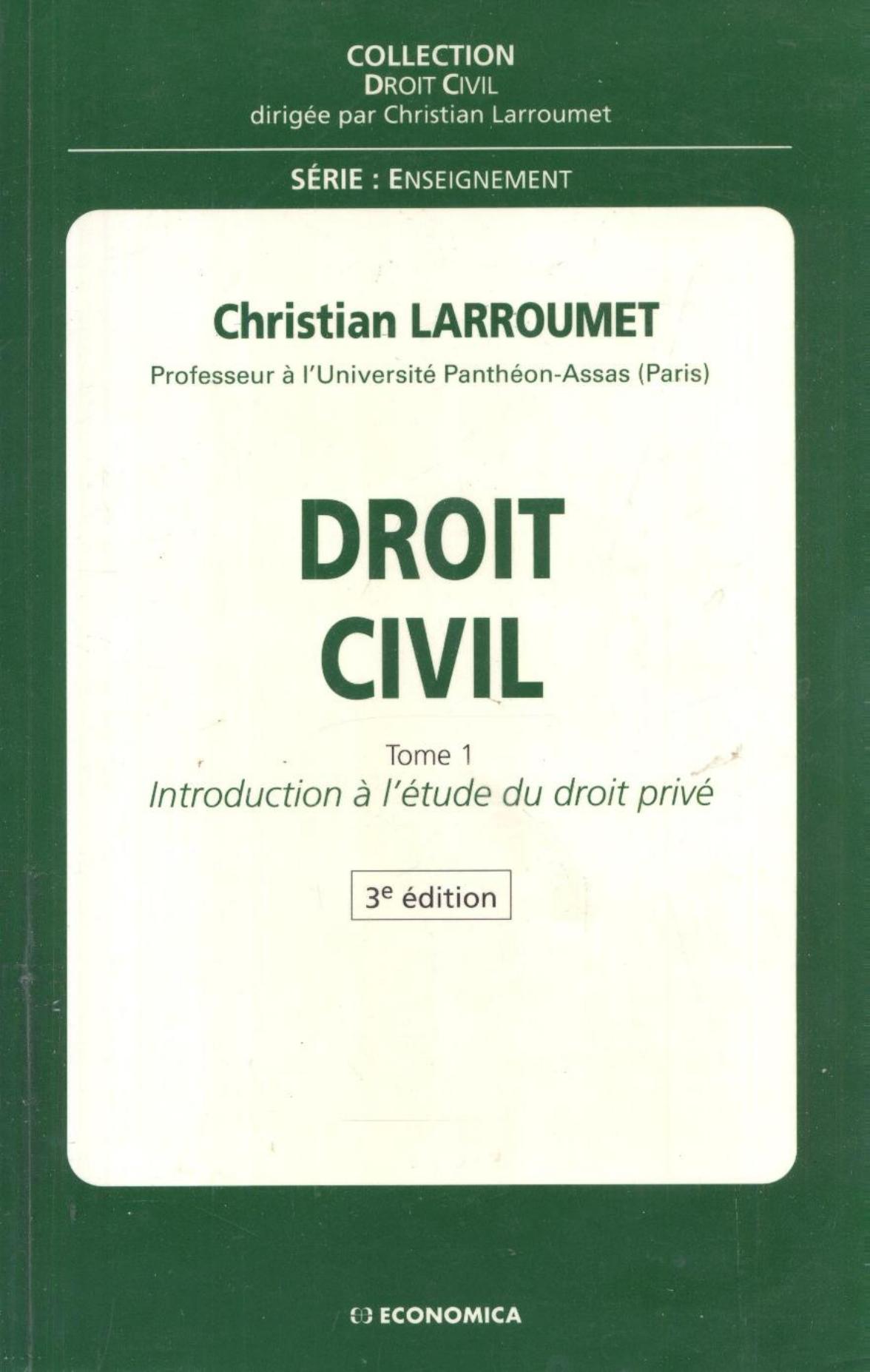 Droit civil .1, Introduction l'étude du droit privé