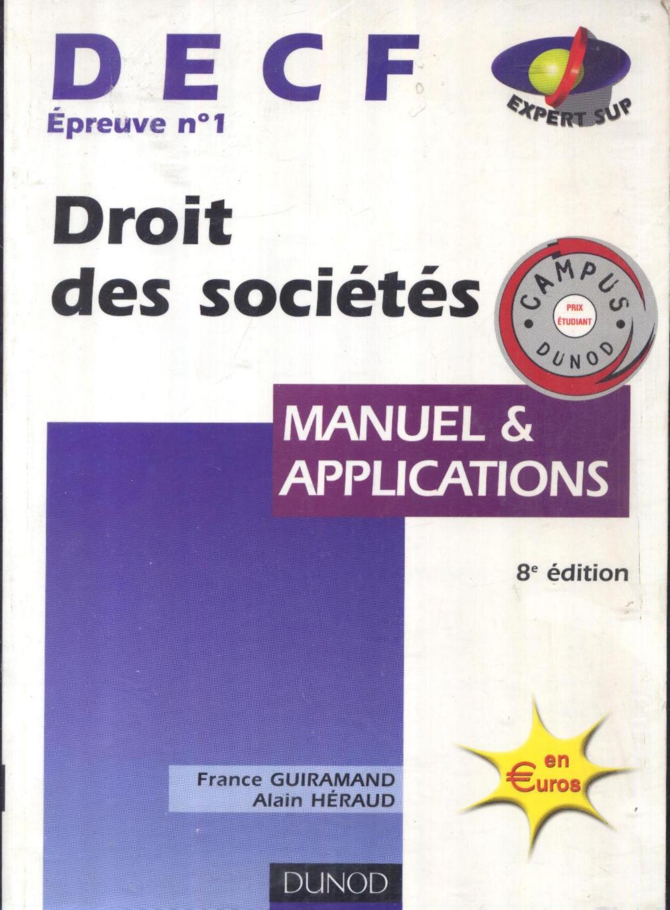 Guiramand, F. & Héraud, A. (2003). Droit des sociétés, des autres groupements et des entreprises en difficulté, DECF 1 (10è éd.) . Dunod;