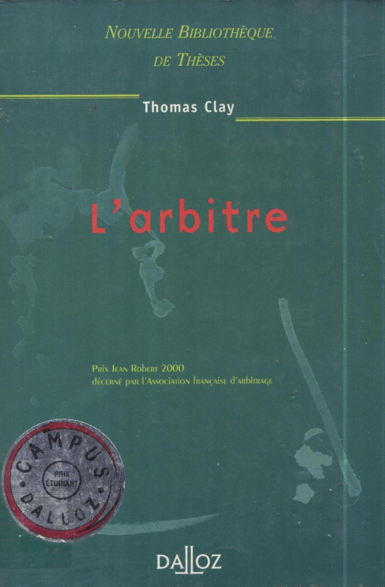 Clay, T. (2001). L'arbitre . Dalloz;