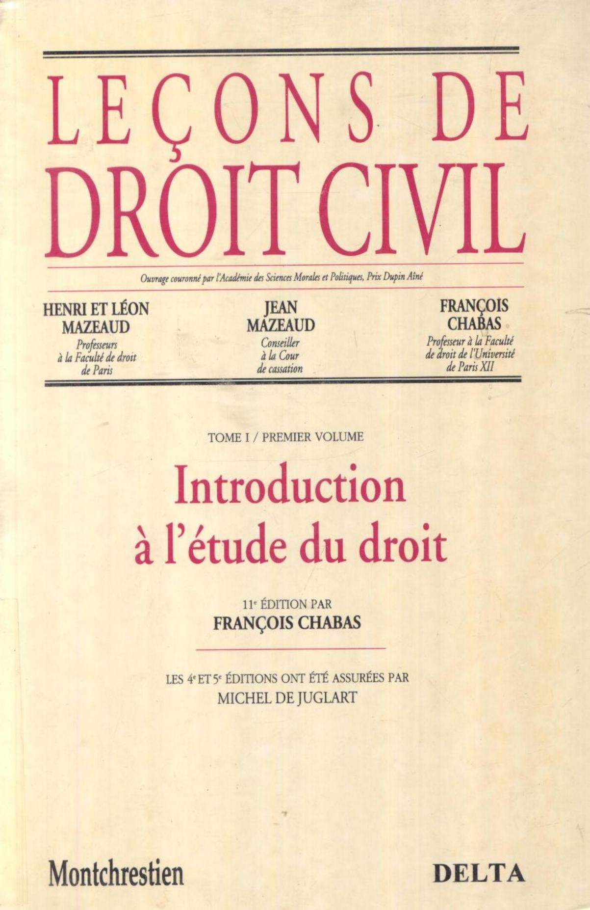 Leçons de droit civil.1, Introduction à l'étude du droit