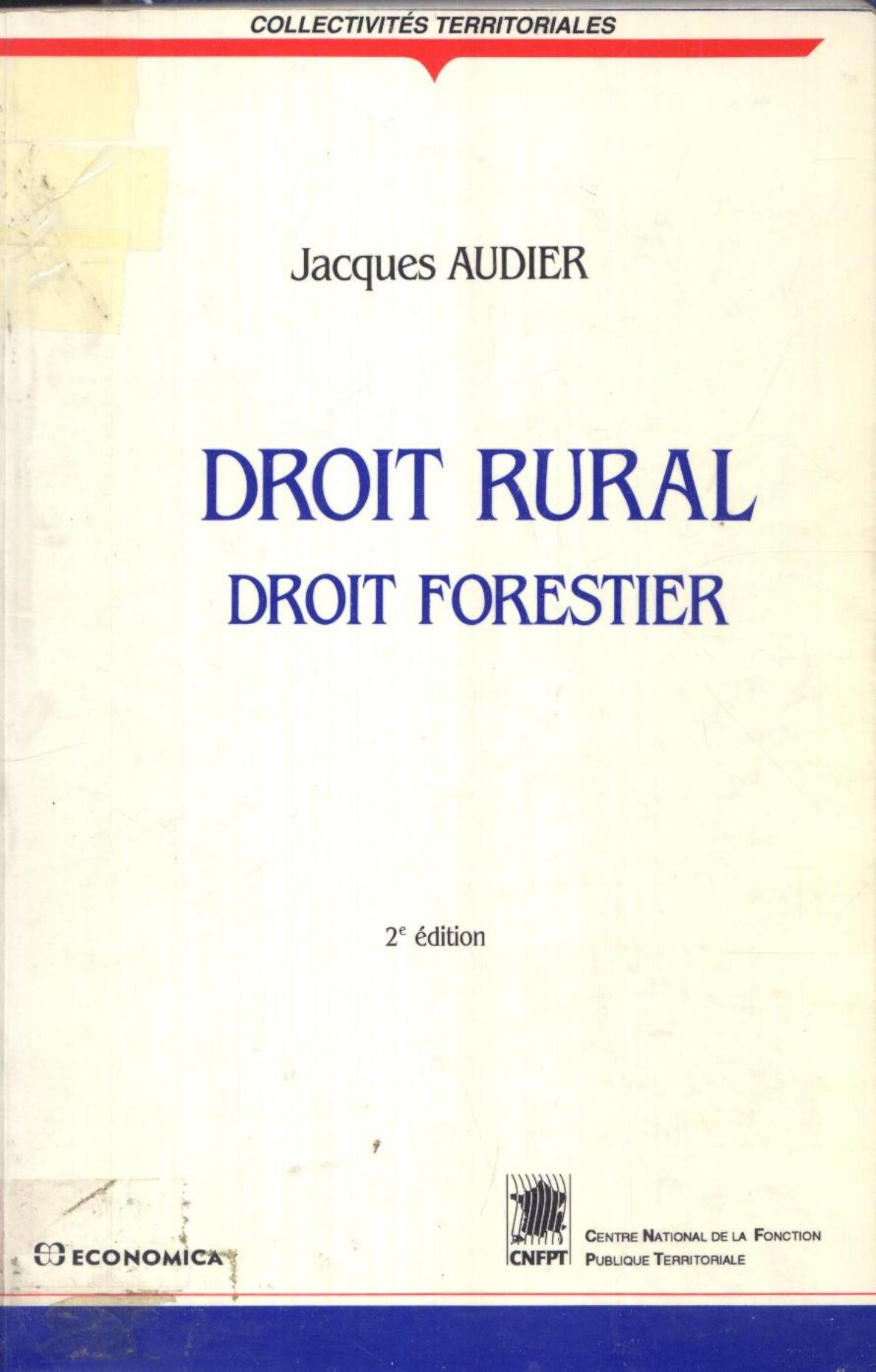 Audier, J. (1993). Droit rural, droit forestier (2è éd) . CNFPT; Economica;