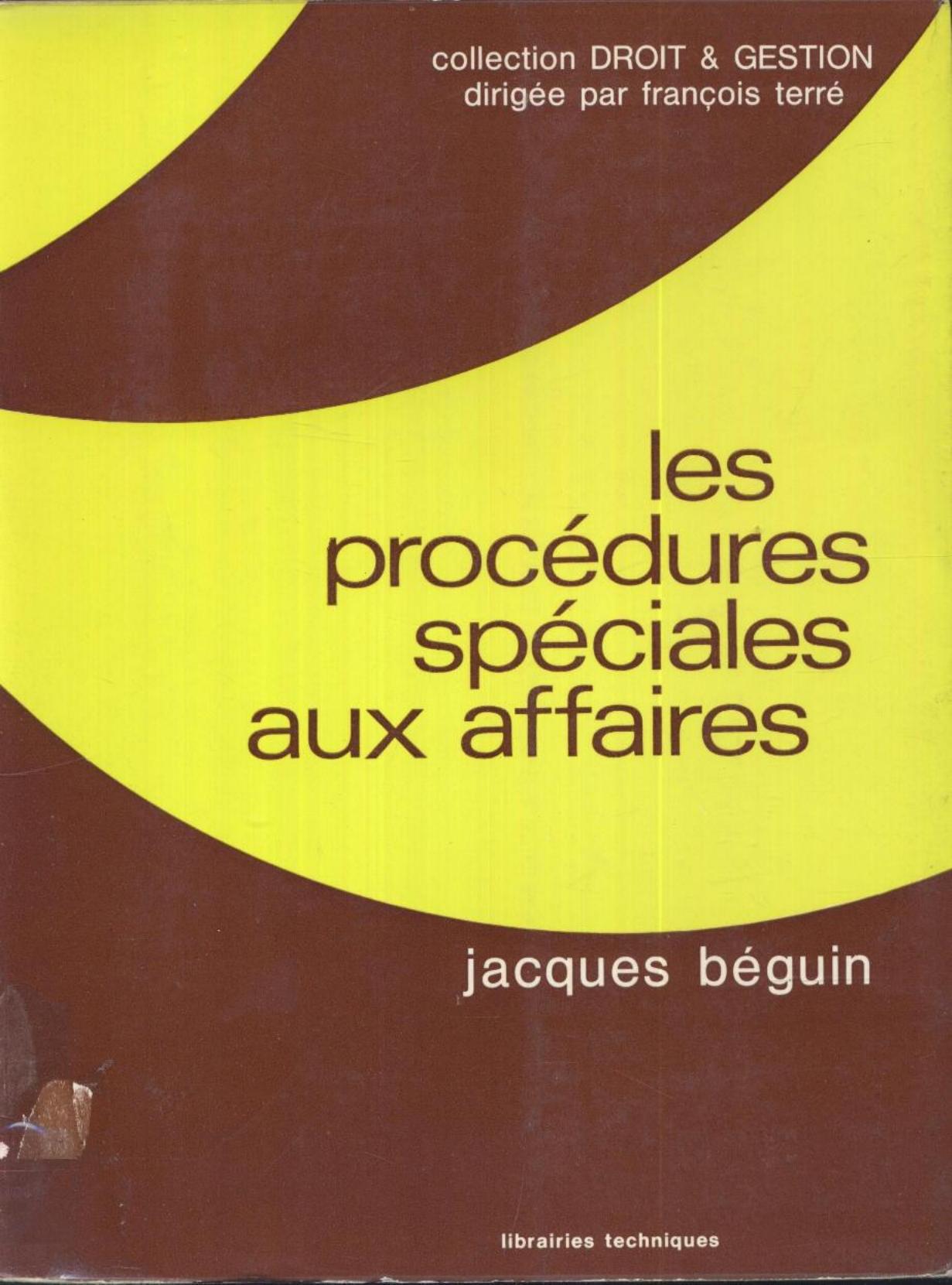 Beguin, J. (1973). Les procédures spéciales aux affaires . Librairies techniques;