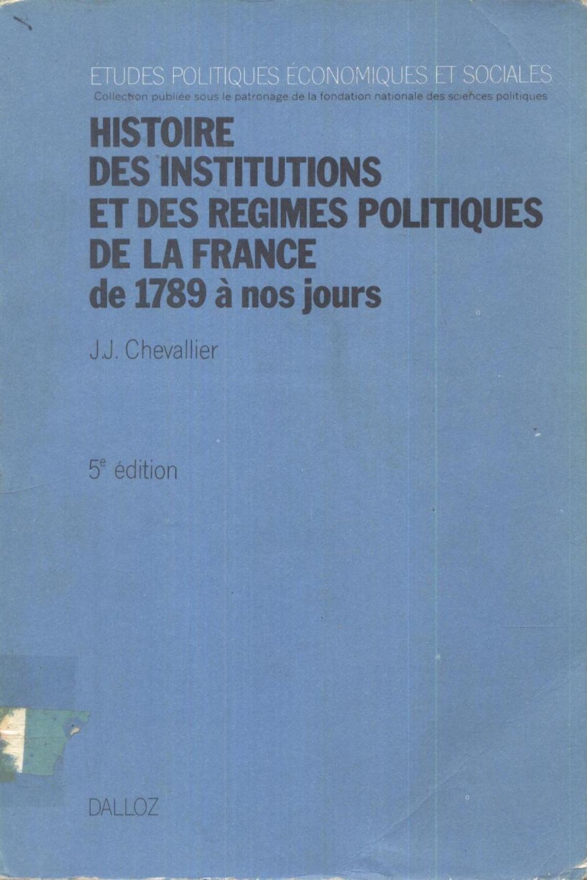 Chevalier, J. (1977). Histoire des institutions et des régimes politiques de la France de 1789 à nos jours (5è éd) . Dalloz;