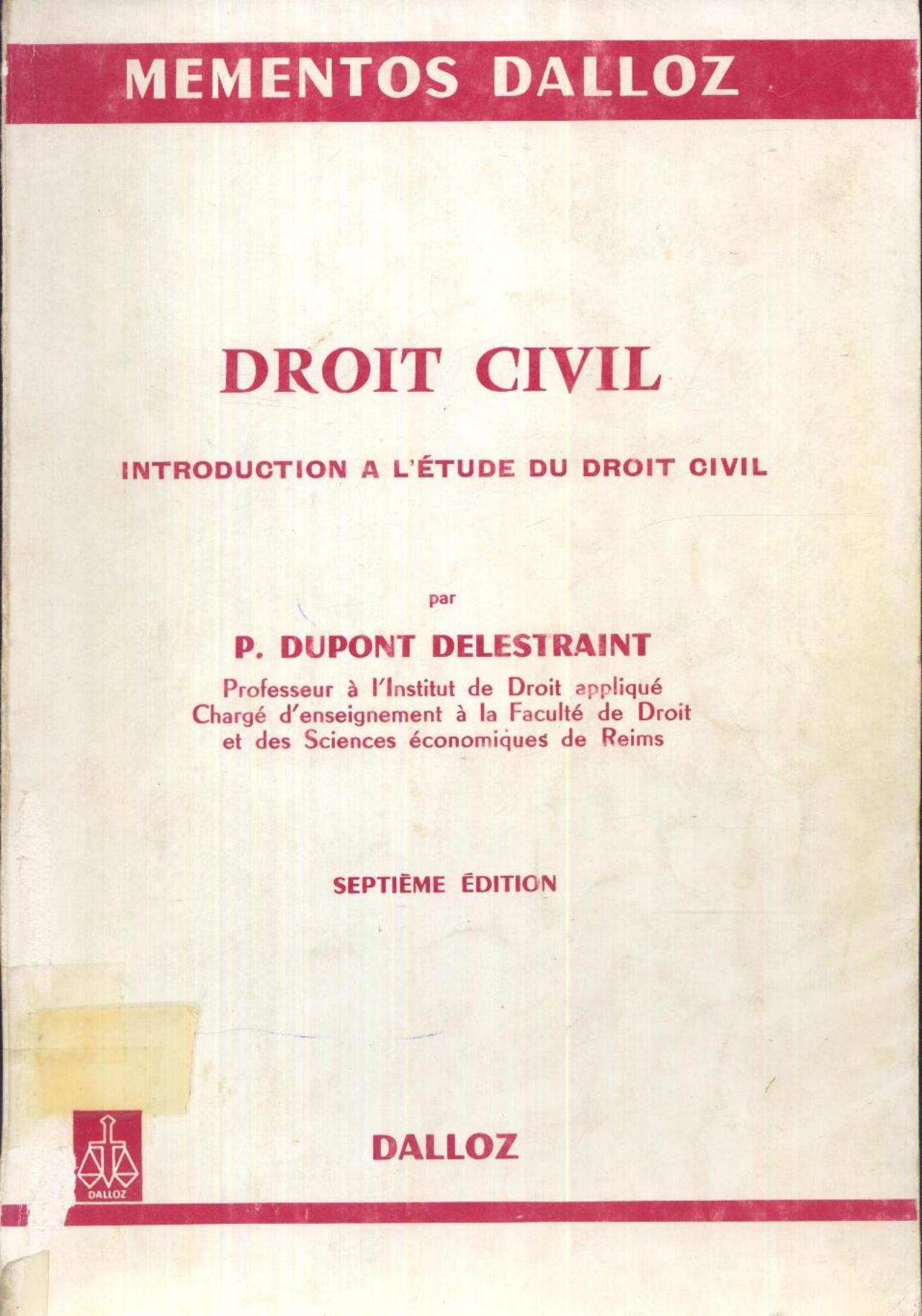 Dupont Delestraint, P. (1978). Droit civil (7è éd) . Dalloz;