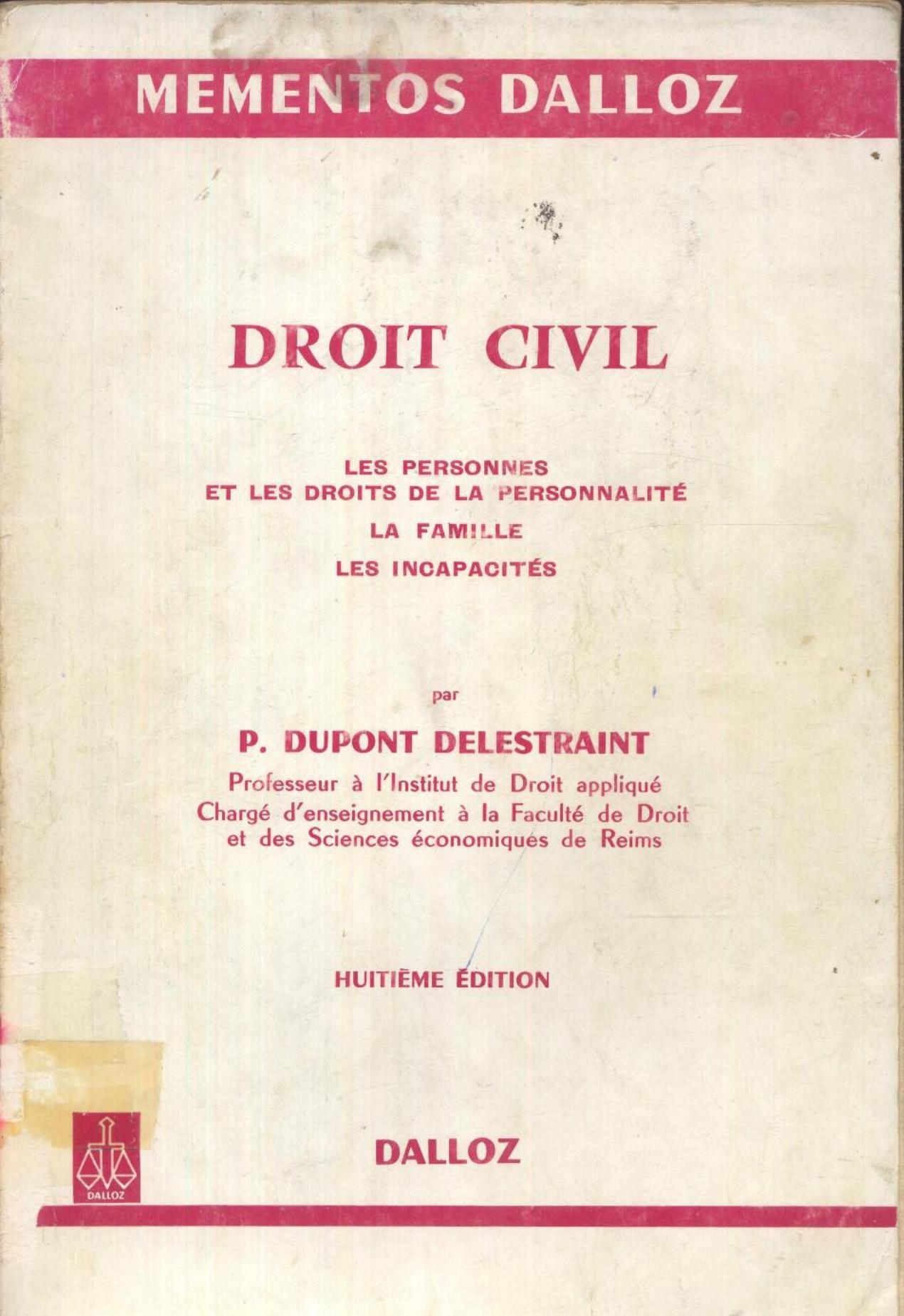Dupont Delestraint, P. (1978). Droit civil (8è éd) . Dalloz;