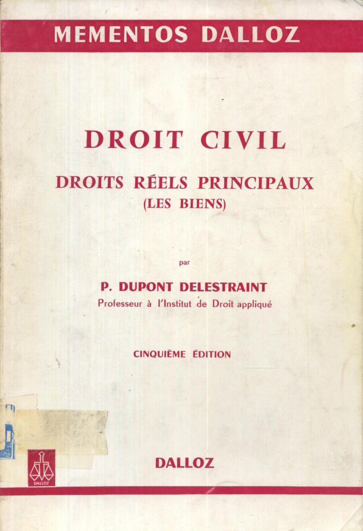 Dupont Delestraint, P. (1977). Droit civil (5è éd) . Dalloz;