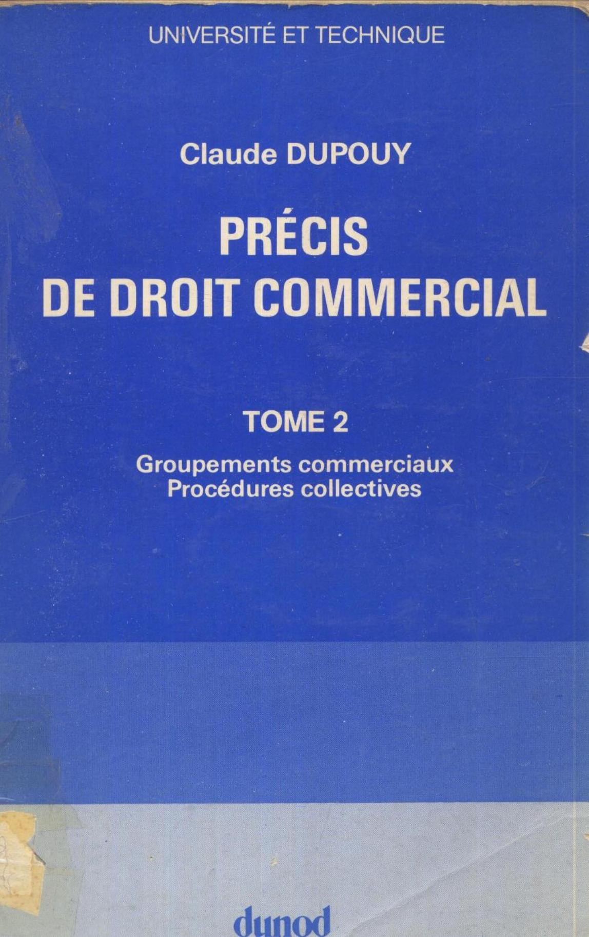 Dupouy, C. (1978). Précis de droit commercial.2, Groupements commerciaux, procédures collectives (2è éd) . Bardas; Dunod;