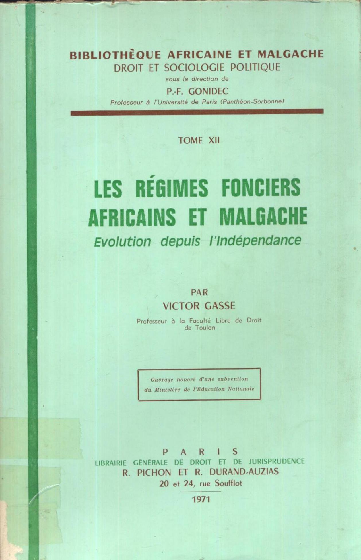 Gasse, V. (1971). Les régimes fonciers africains et malgaches . L.G.D.J.;