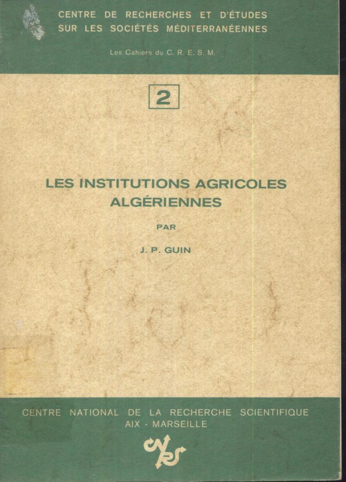 Guin, J. & C.R.E.S.M. (1974). Les institutions agricoles algériennes . CNRS;
