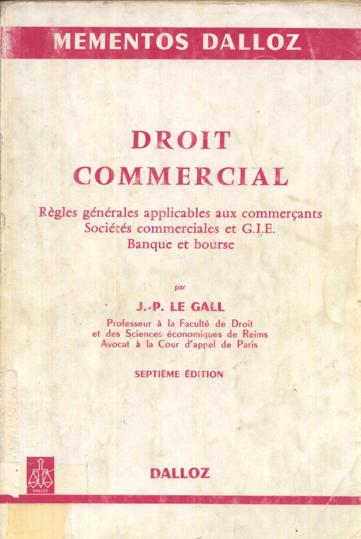 Le Gall, J. (1978). Droit commercial (7è éd) . Dalloz;