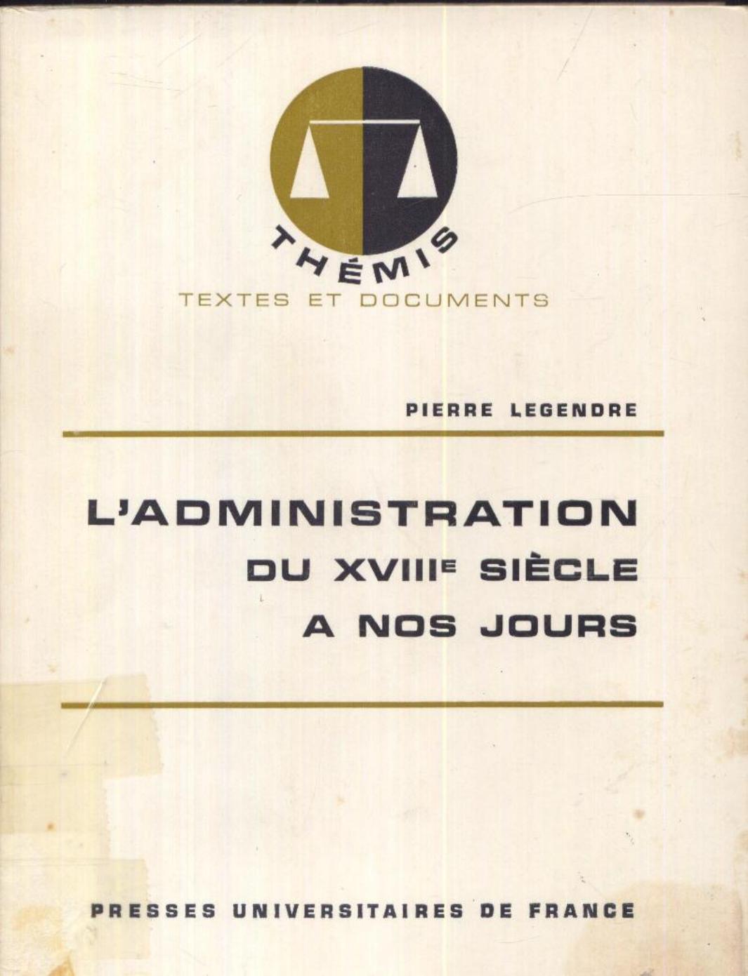 Legendre, P. (1969). L'administration du XVIIIème siècle à nos jours . PUF;