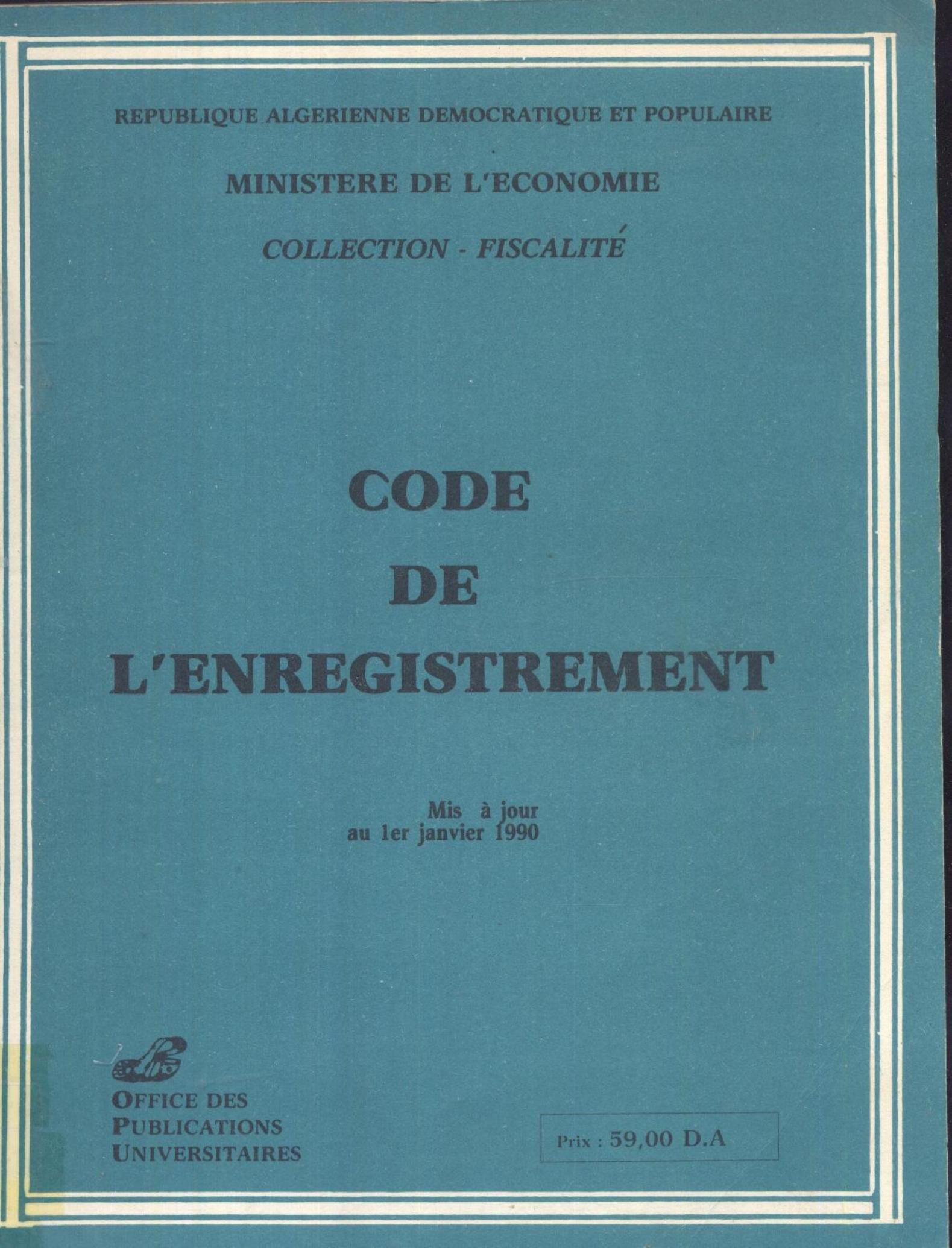 Algérie. Ministère de l'Economie (1990). Code de l'enregistrement . OPU;