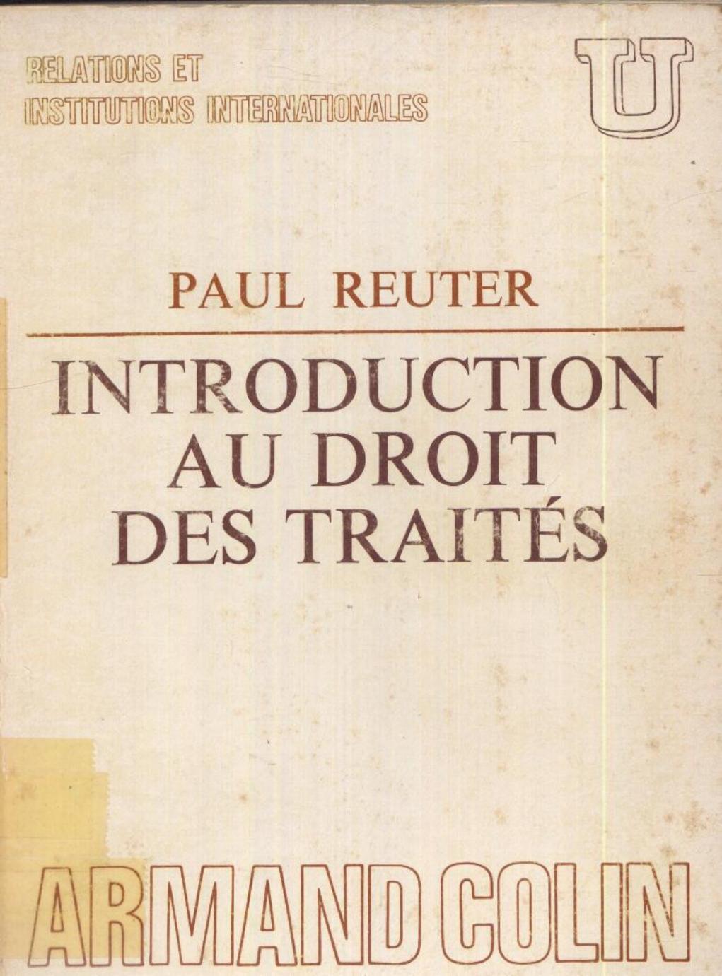 Reuter, P. (1972). Introduction au droit des traités . Arman Colin;