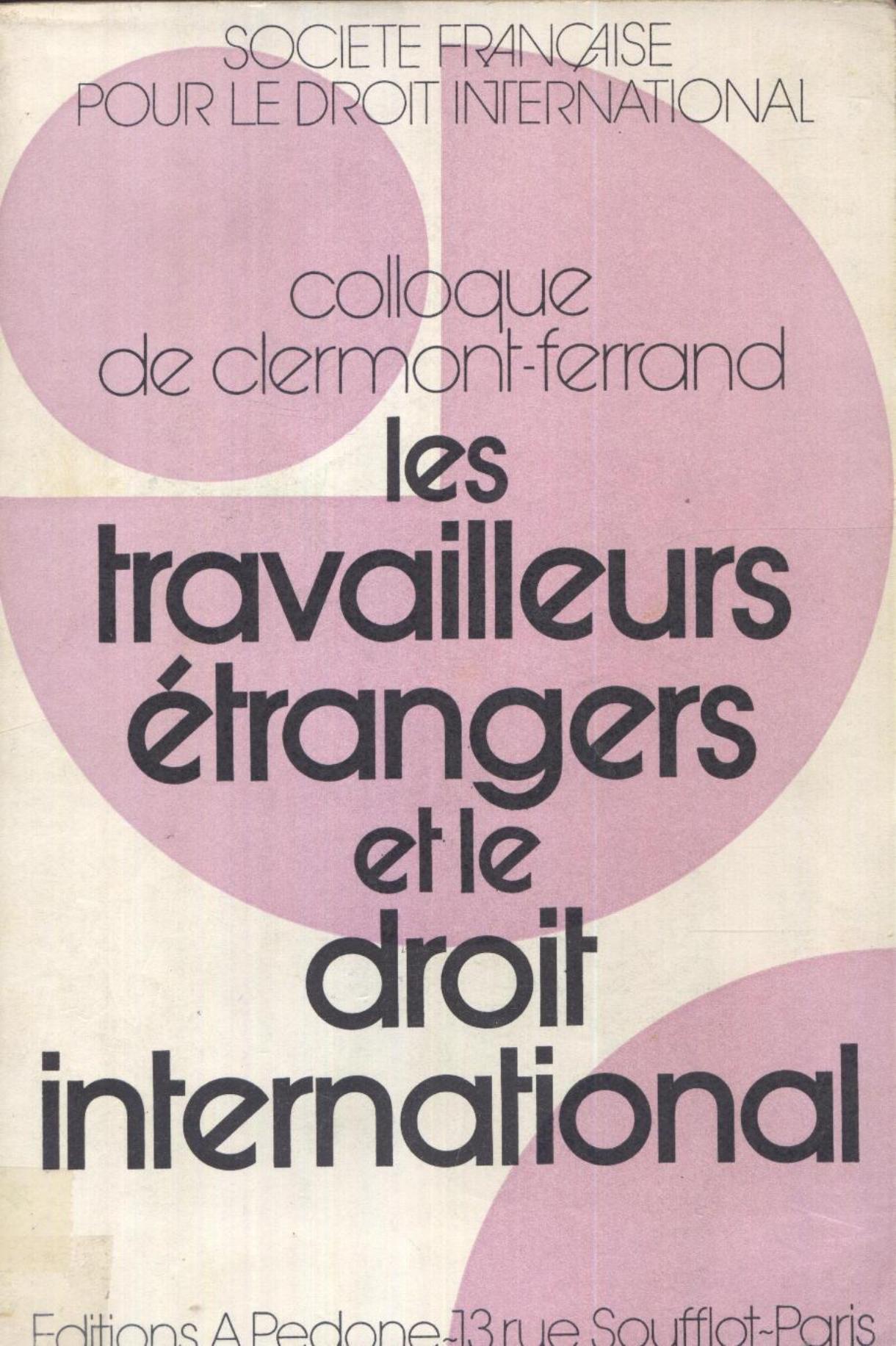 Société française pour le droit international. Faculté de droit et des sciences économiques de Clermont Ferrand (1978). Les travailleurs étrangers et le droit international . Pedone;