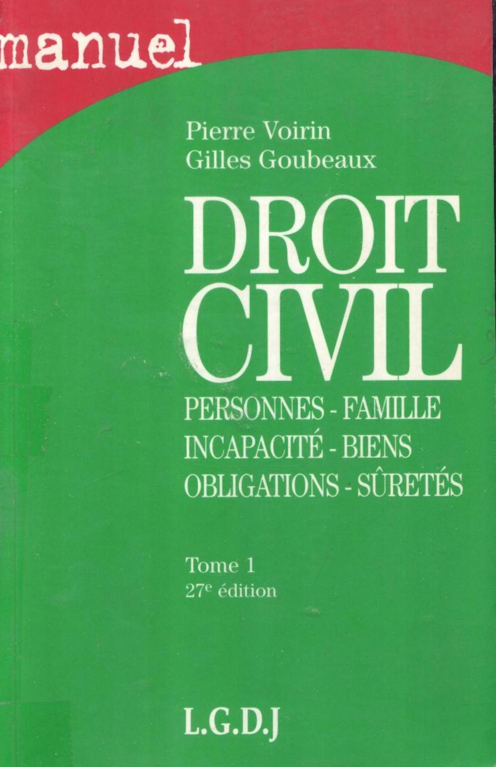 Voirin, P. & Goubeaux, G. (1999). Droit civil (27è éd.) . L.G.D.J.;