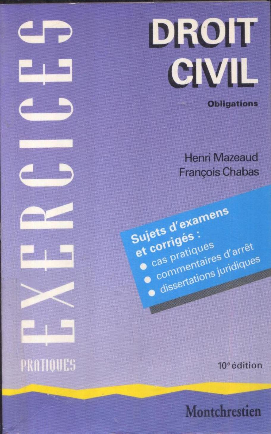 Mazeaud, H. & Chabas, F. (2000). Droit civil. 2, Obligations (10 éme éd.) . Montchrestien;