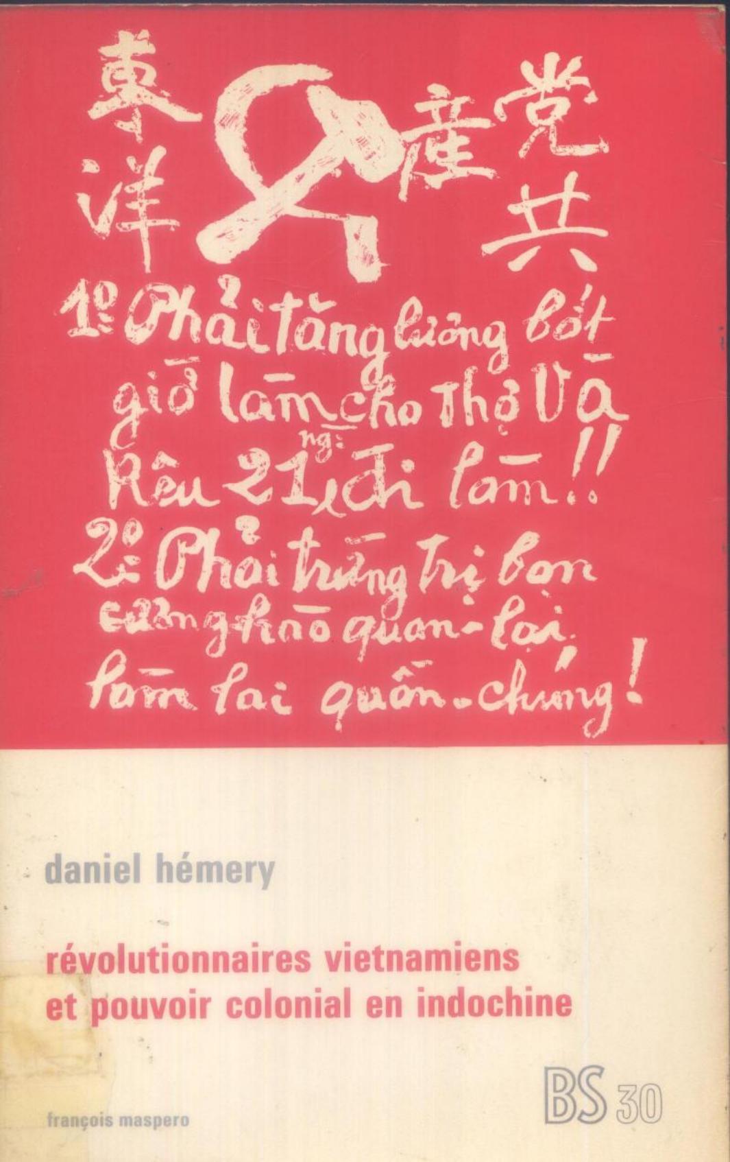 Hemery, D. & Centre national de recherche scientifique (1975). Révolutionnaires vietnamiens et pouvoir colonial en Indochine . Maspéro;