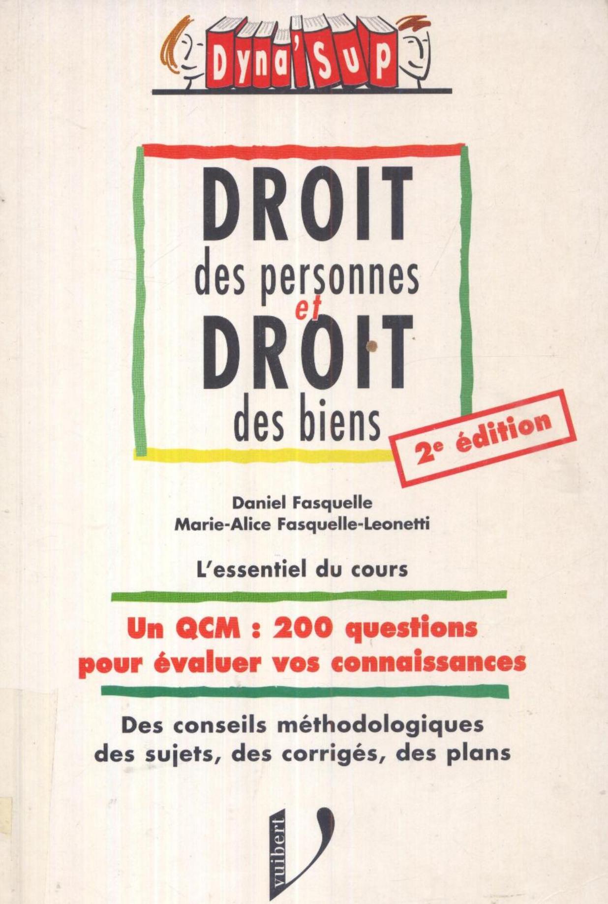 Fasquelle, D. et al. (1998). Droit des personnes et droit des biens (2è éd) . Vuibert;