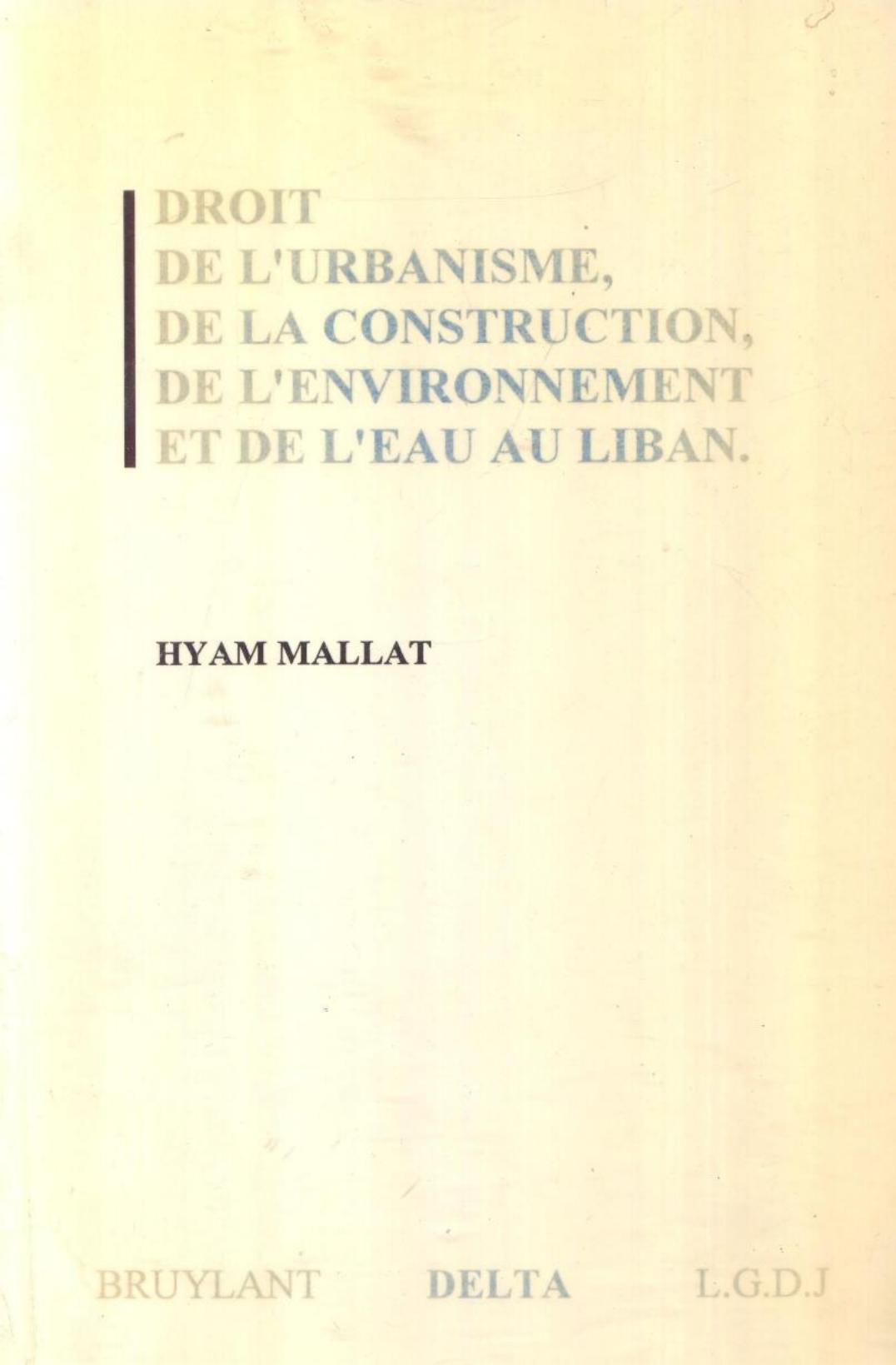 Mallat, H. (1997). Le droit de l'urbanisme, de la construction, de l'environnement et de l'eau au Liban . Brylant;