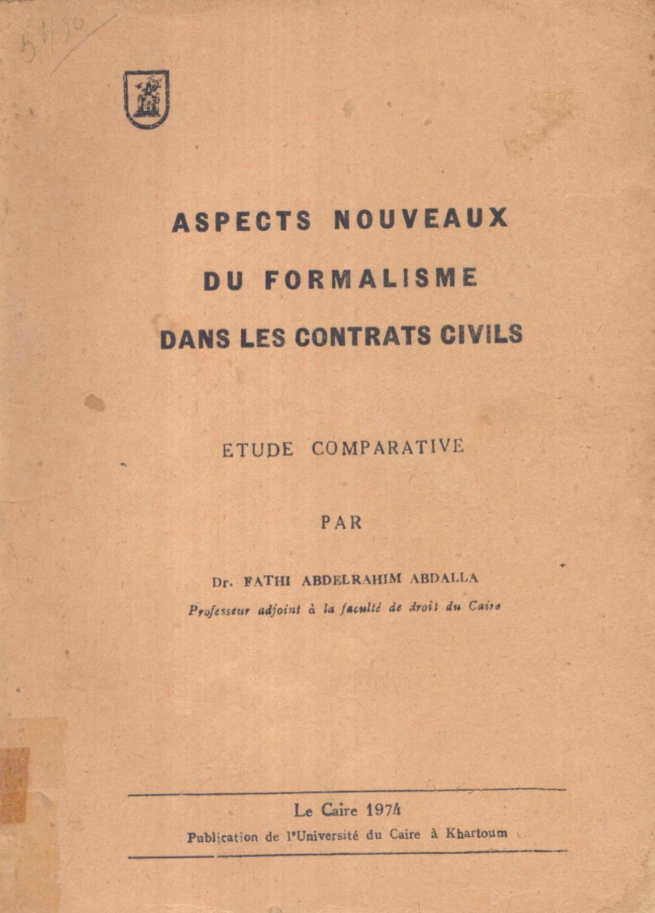 Abdelrahim Abdalla, F. (1974). Aspects nouveaux du formalisme dans les contrats civils . Publication de l'université du Caire;