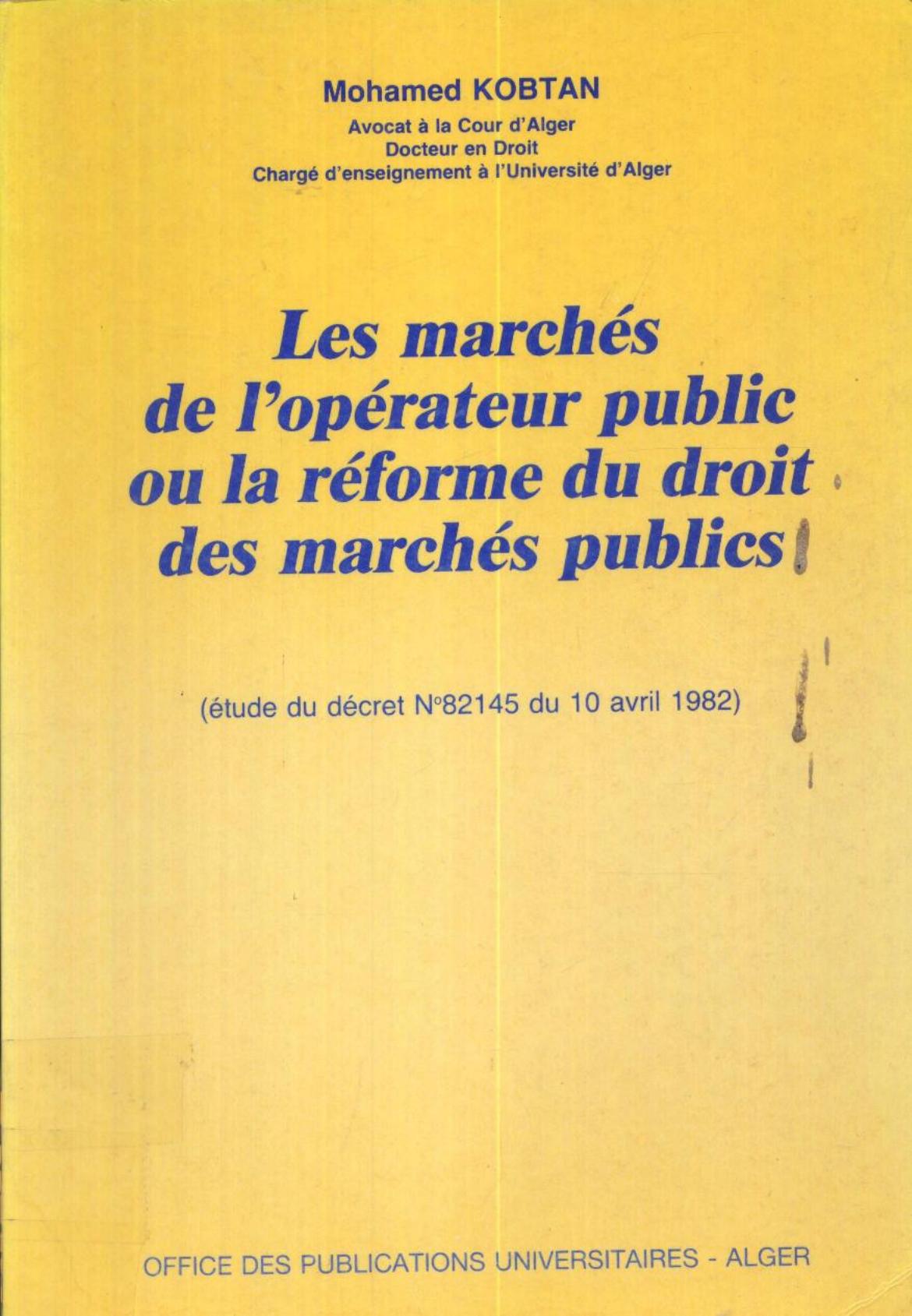 Kobtan, M. (s.d.). Les marchés de l'opérateur public ou la réforme du droit des marchés publics . OPU;