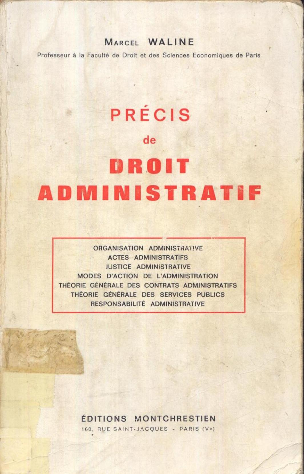 Waline, M. (1969). Précis de droit administratif. 1, Organisation administrative, actes administratifs, justice administrative, modes d'action de l'administration... . Montchrestien;