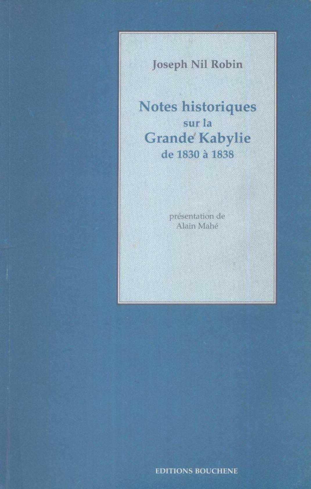 Nil Robin, J. (1999). Notes historiques sur la grande kabylie de 1830 à 1838 . Bouchène;