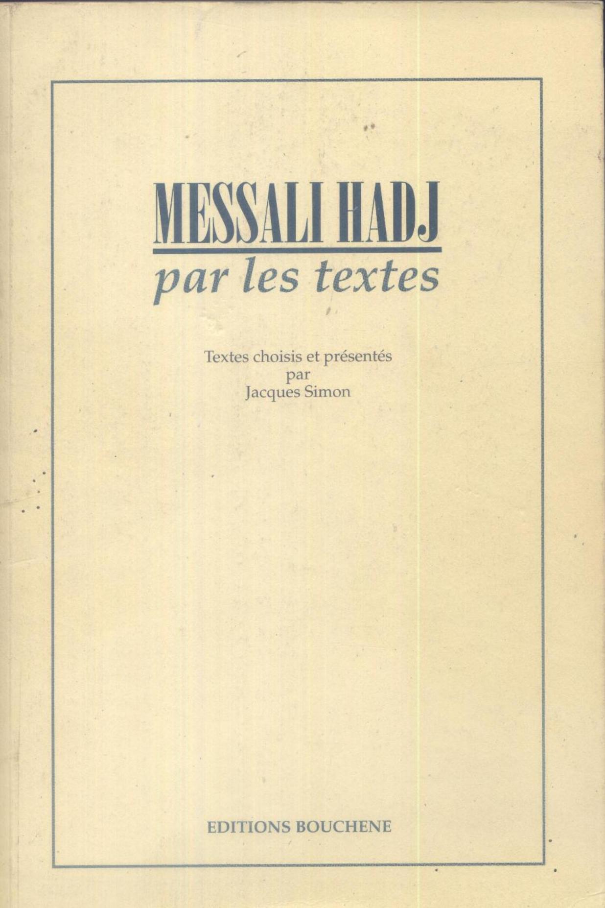 Simon, J. (2000). Messali Hadj par les textes . Bouchène;