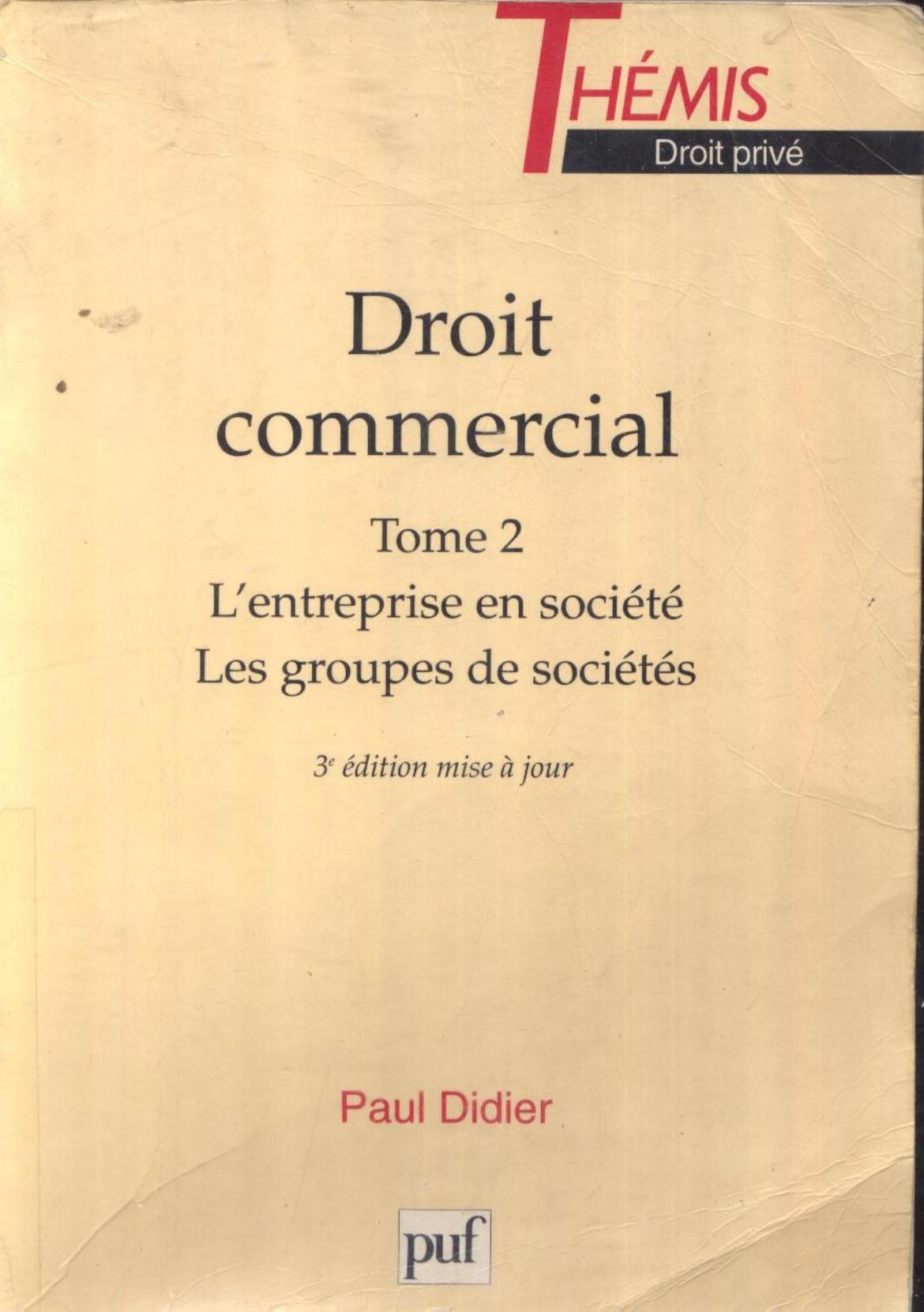 Didier, P. (1993). Droit commercial. 2, L'entreprise en societé les groupes de societés (3 Ed.) . PUF;