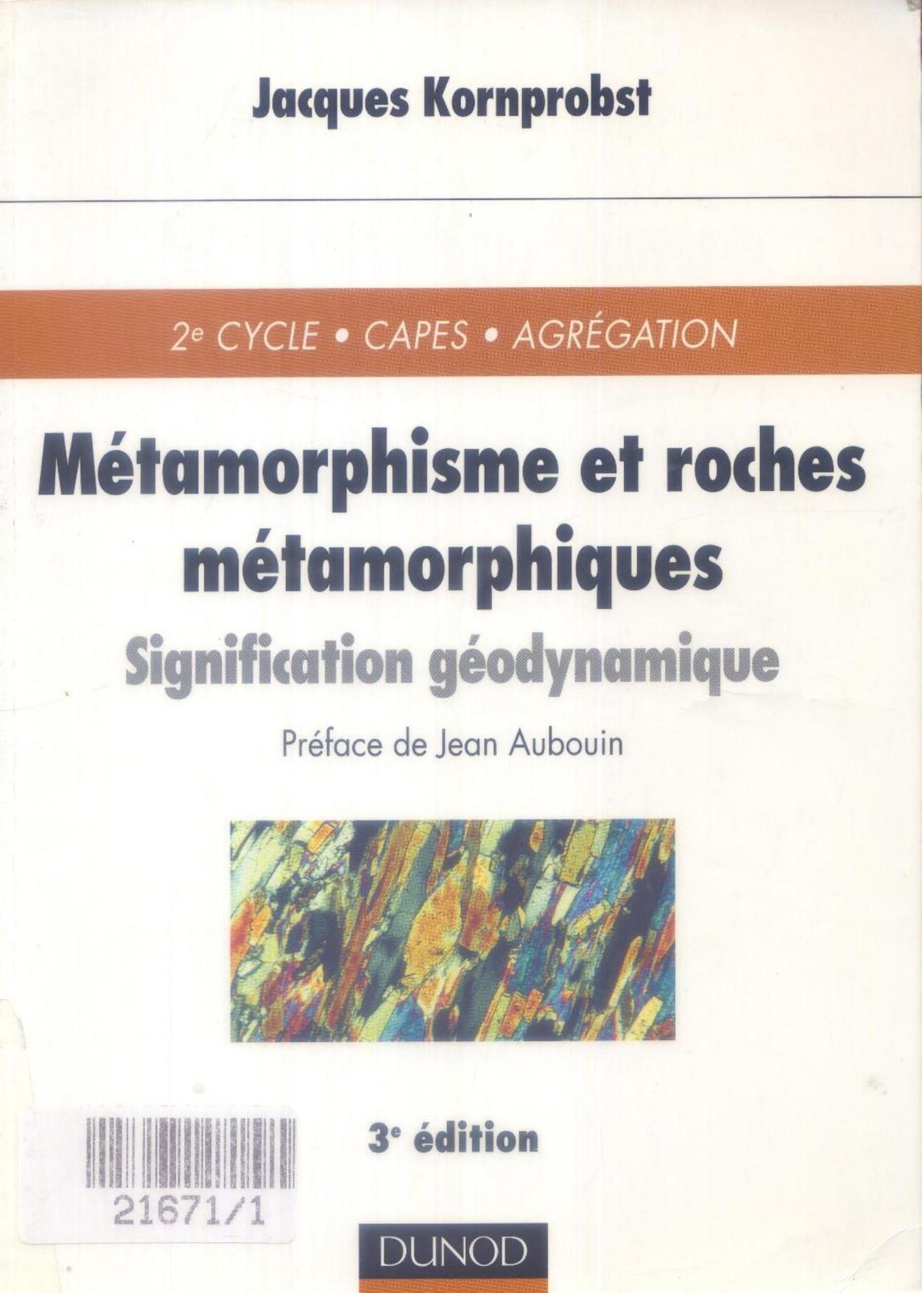 Kornprobst, J. & Aubouin, J. (2001). Métamorphisme et roches métamorphiques (3è éd.) . Dunod;