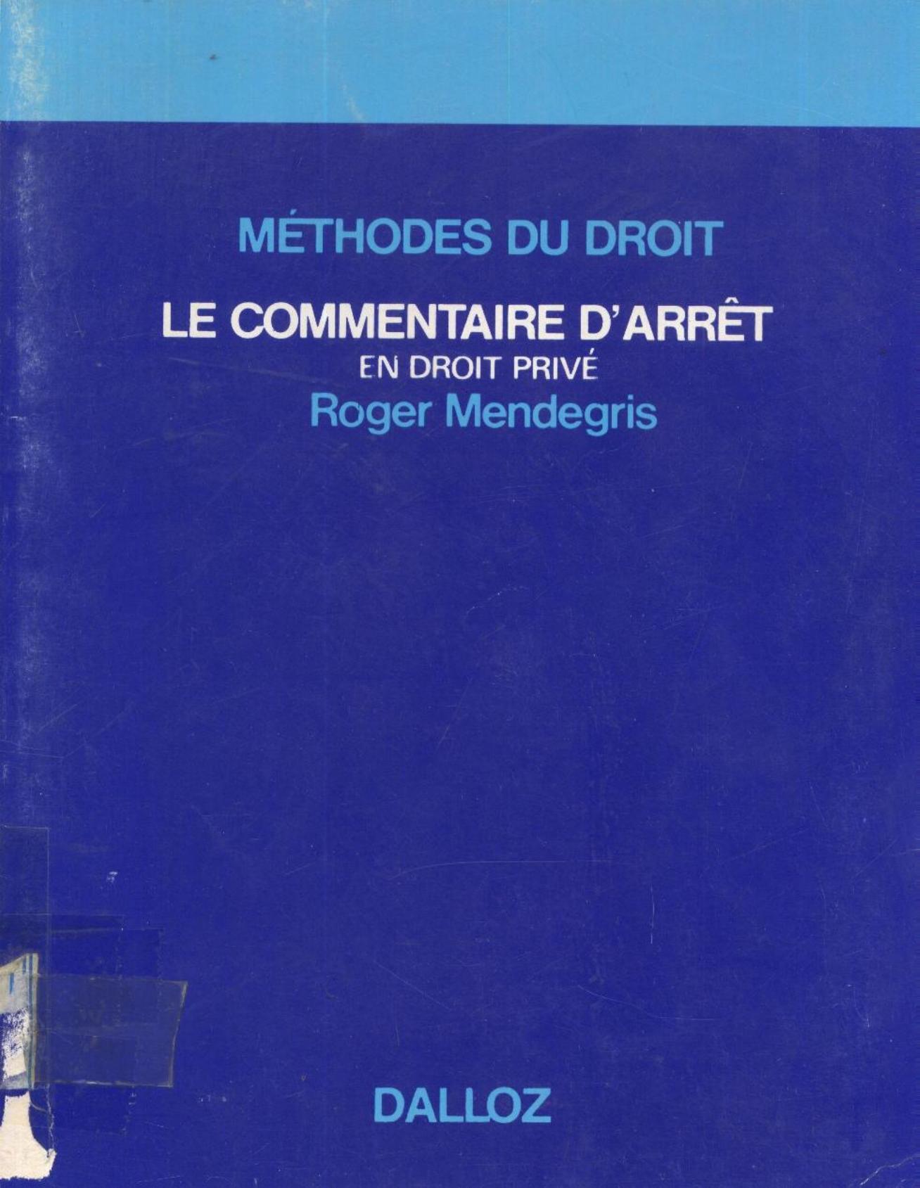 Mendegris, R. & Catala, P. (1975). Le commentaire d'arrêt en droit privé . Dalloz;
