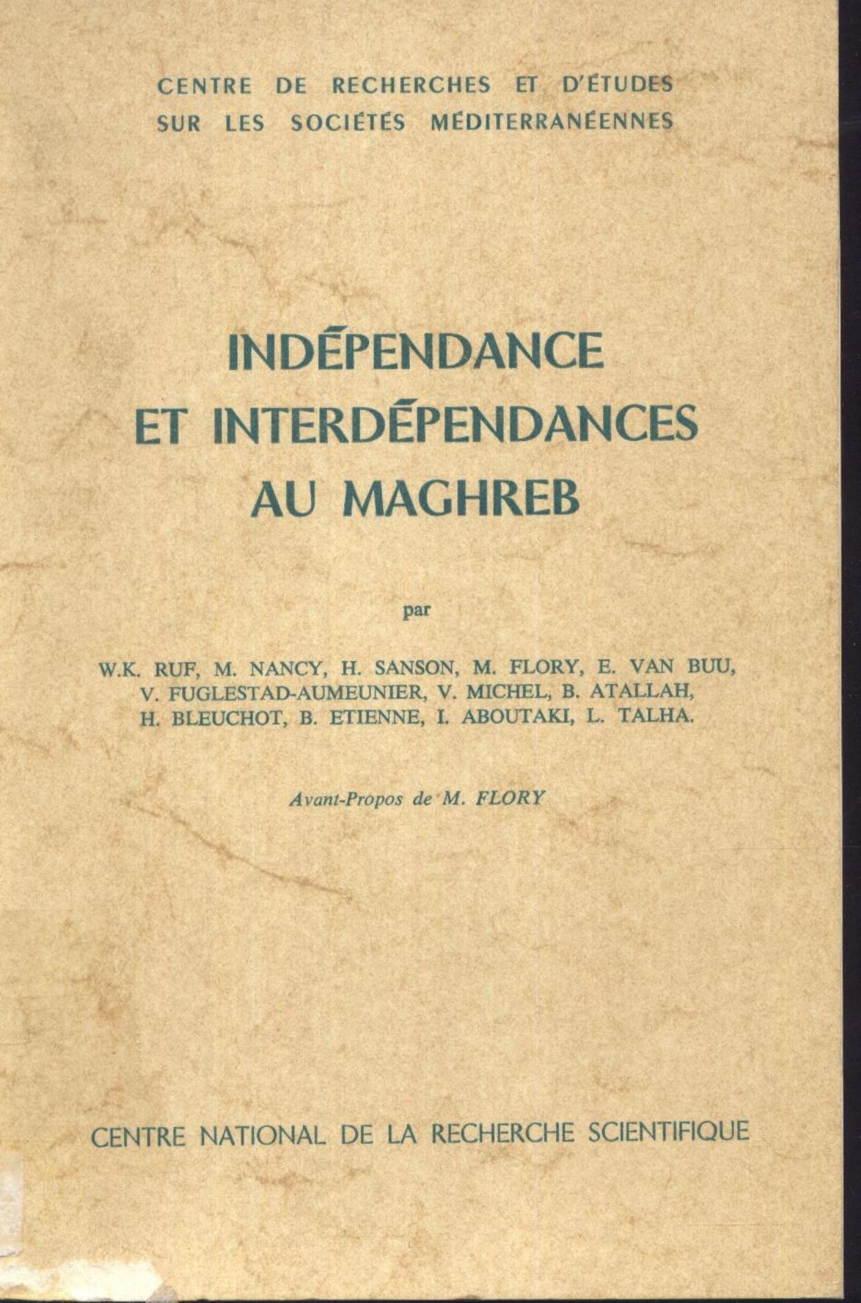 Nancy, M. et al. (1974). Indépendance et interdépendances au Maghreb . CNRS;