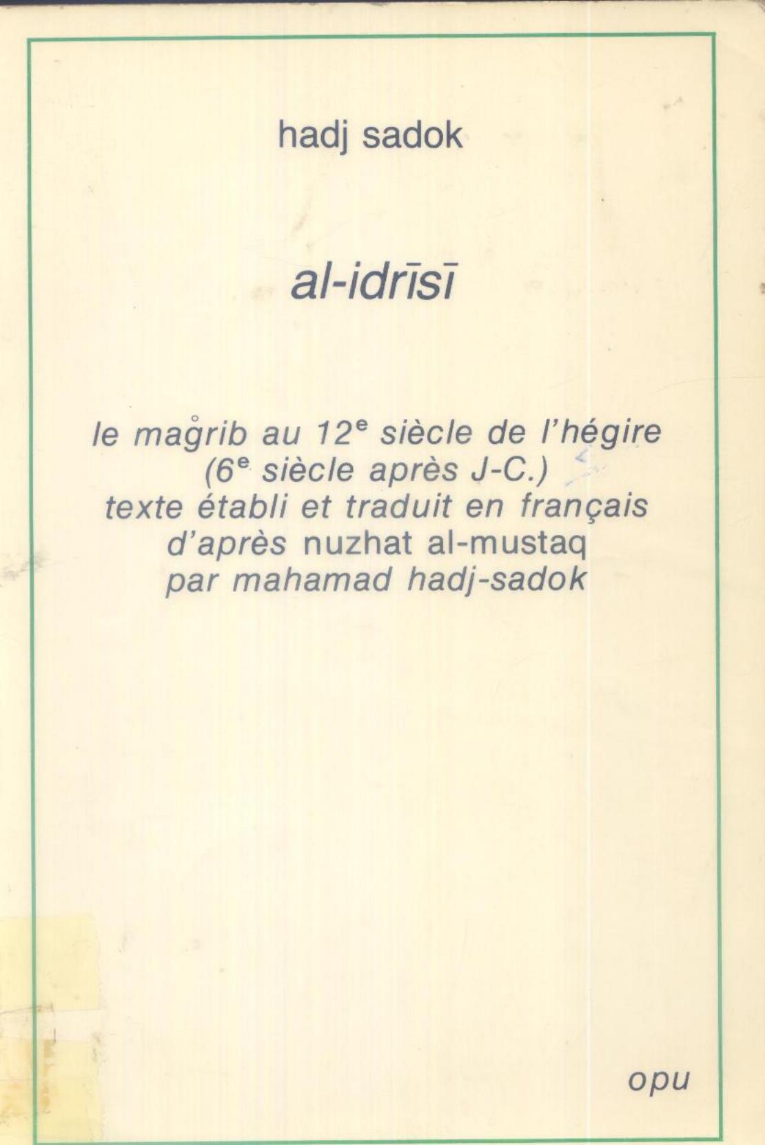 Al-Idrisi & Hadj-Sadok, M. (1983). Le Magrib au 6ème siècle de l'hégire (12ème siècle après J-C) . OPU;