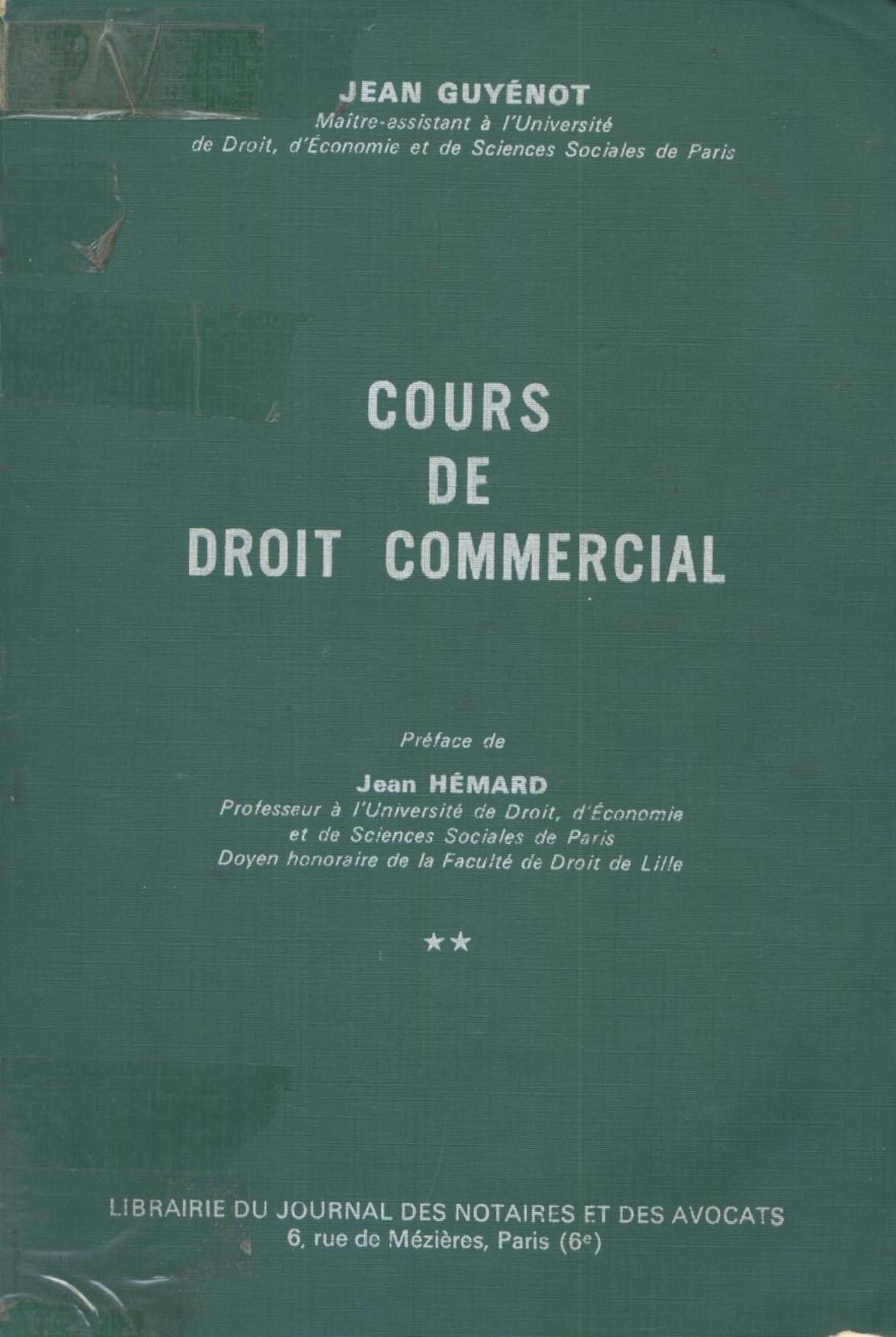 Guyénot, J. & Hémard, J. (1977). Cours de droit commercial . Librairie du journal des notaires et des avocats;