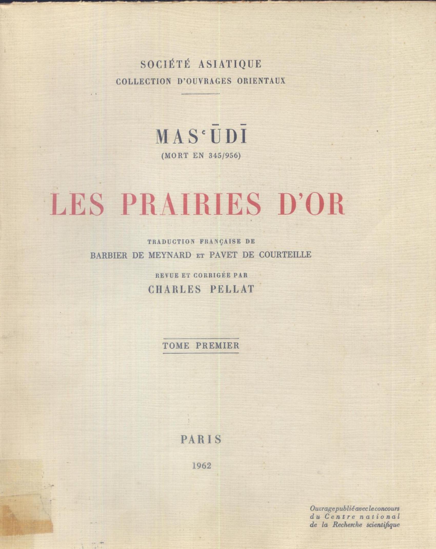 Masudi & Meynard, B. (1962). Les prairies d'or. 1 . CNRS;