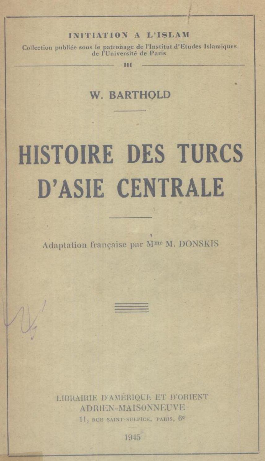 Barthold, W. (1945). Histoire des turcs d'Asie centrale . Adrien-Maisonneuve;