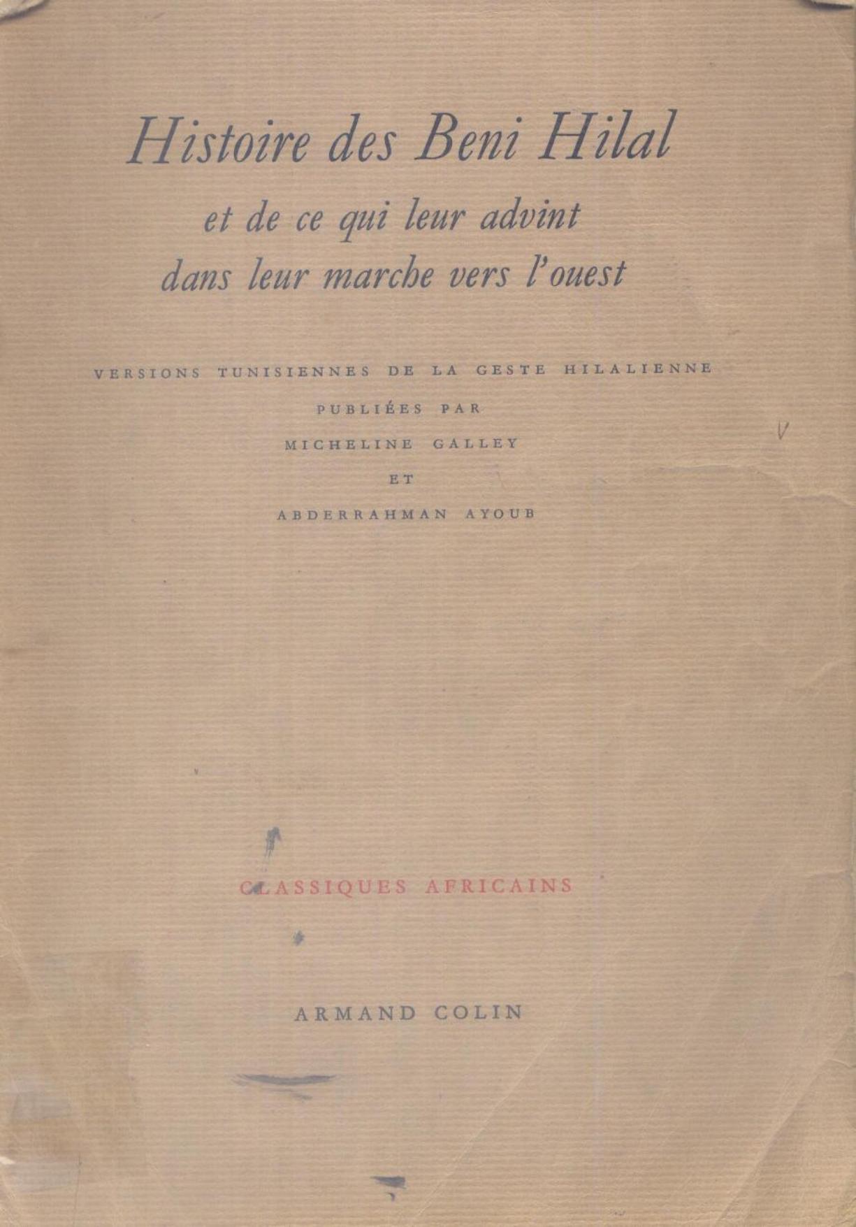 Galley, M. & Ayoub, A. (1983). Histoire des Beni Hilal et de ce qui leur advint dans leur marche vers l'ouest . Arman Colin;